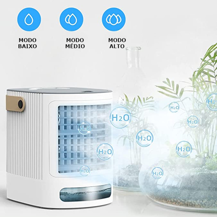 Desfrute de ar fresco com o nosso Air Cooler 3EM1 – Mini Ar Condicionado compacto.