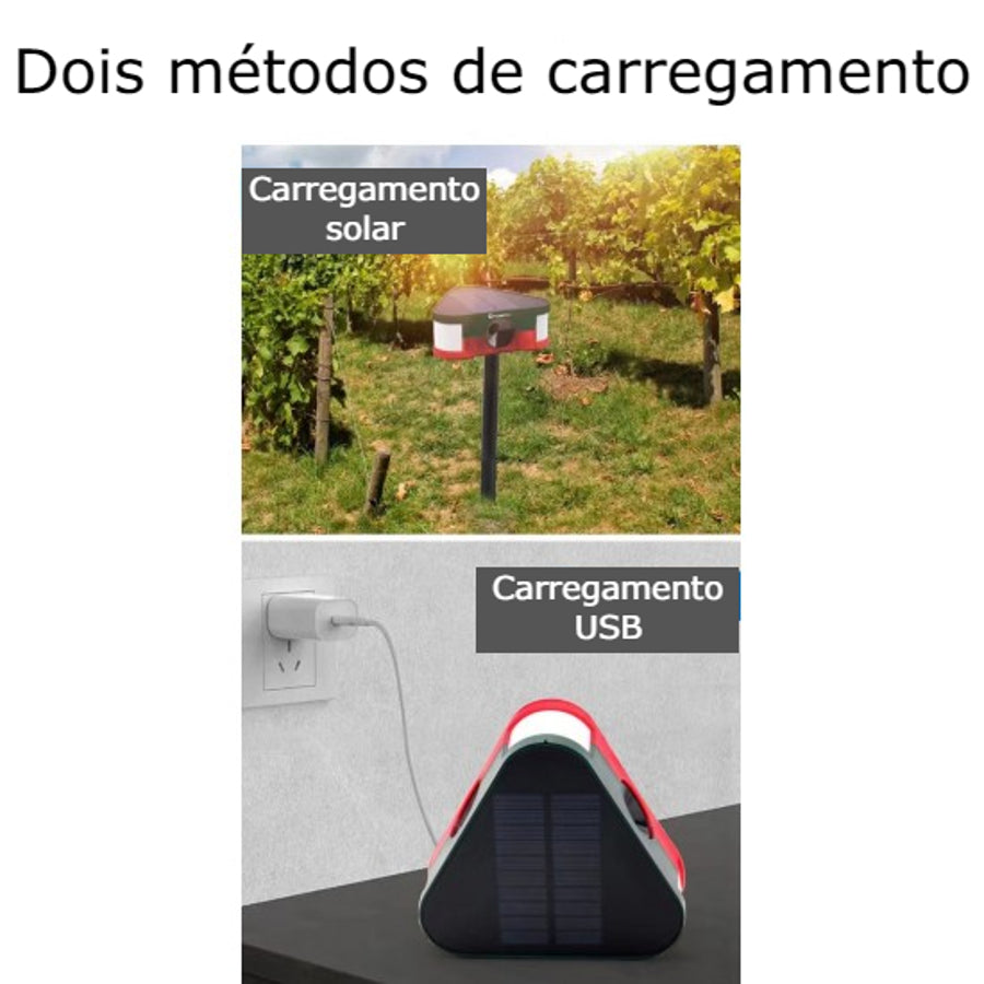 O alarme solar repelente de animais possui quatro modos de trabalho para que consiga aprimorar às suas necessidades. Pode ser utilizado em dias chuvosos, visto que este é resistente à água.