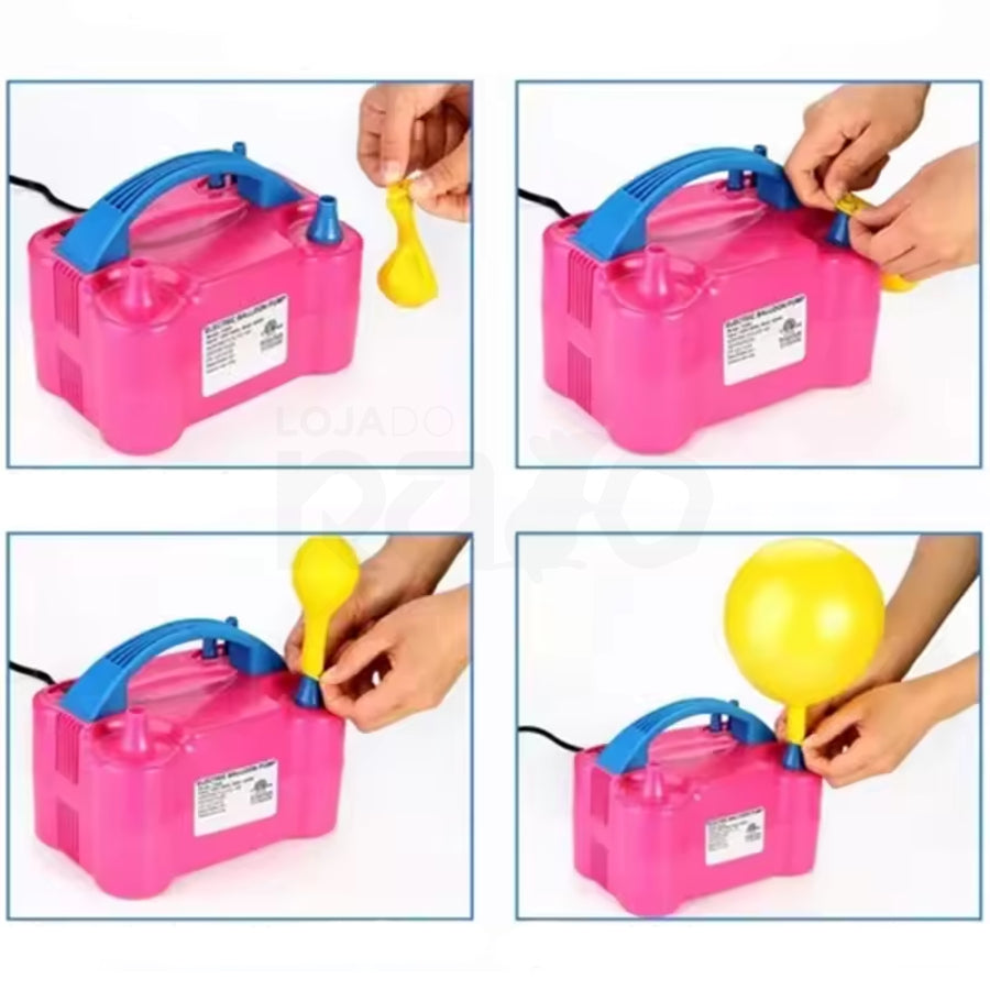 ✅ Contém dois bicos especiais para encher de forma mais rápida e fácil os balões;