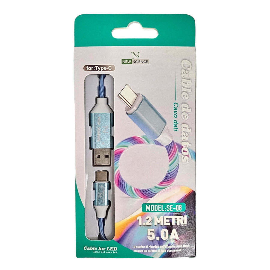 Um cabo que irá iluminar os espaços em que o utilizar, ideal para carregar dispositivos móveis ou para transferir dados.