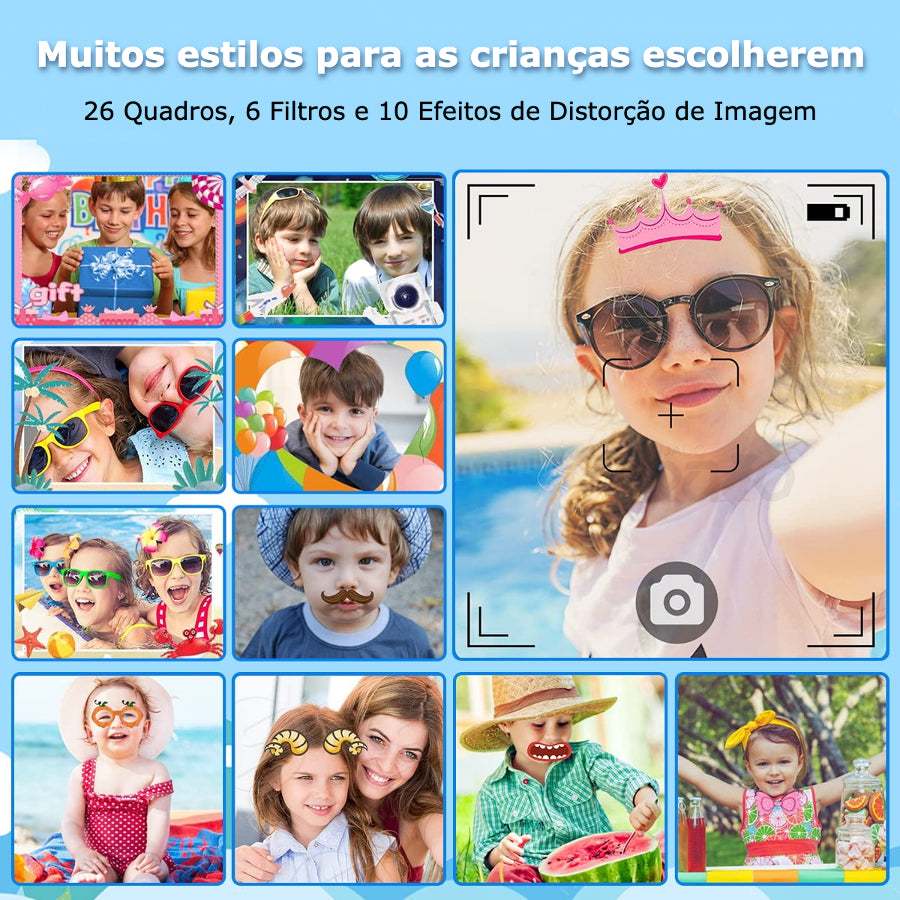 Os efeitos que a câmara tem tornam-se mais divertidas para as crianças para estas se divertirem com os amigos e capturarem os melhores momentos.