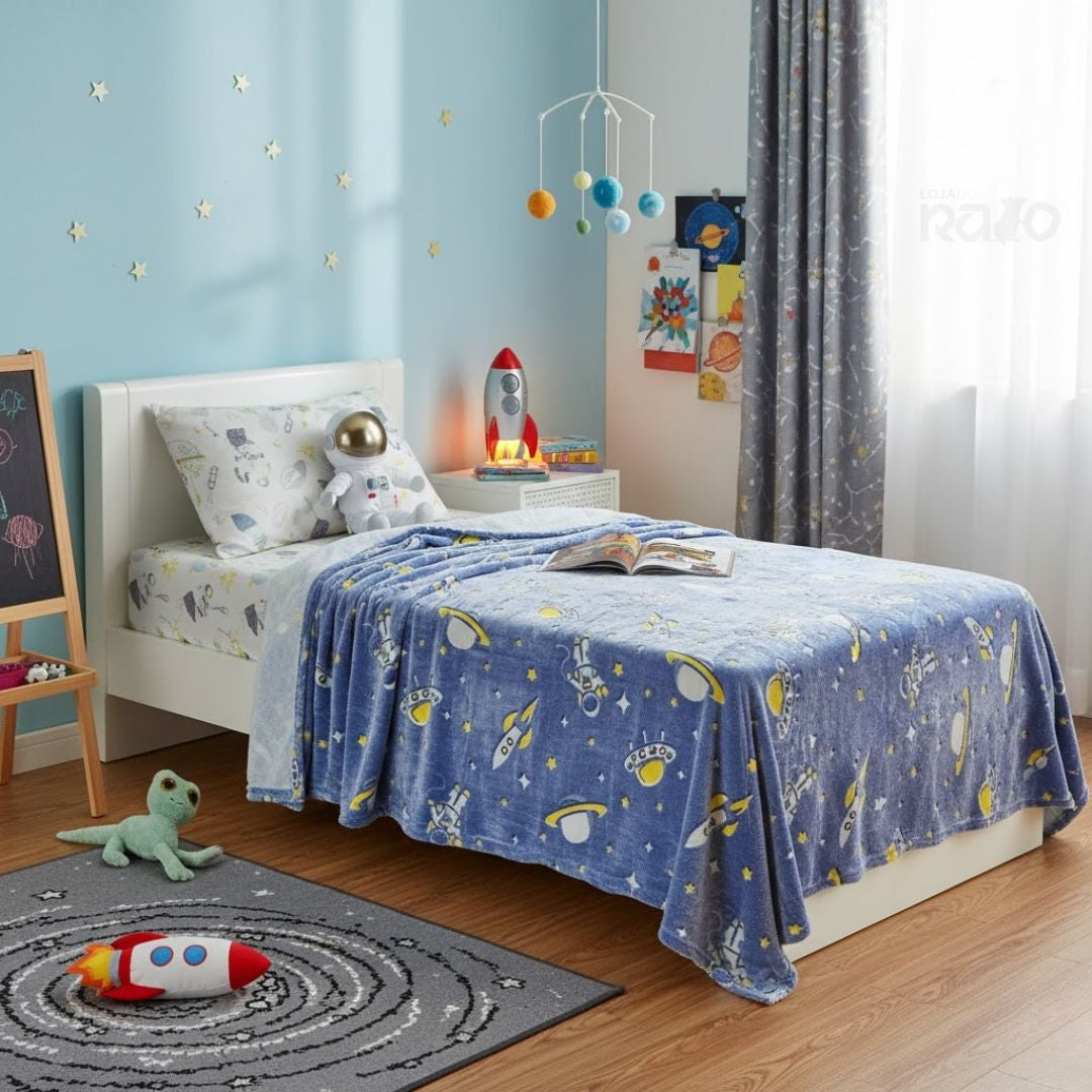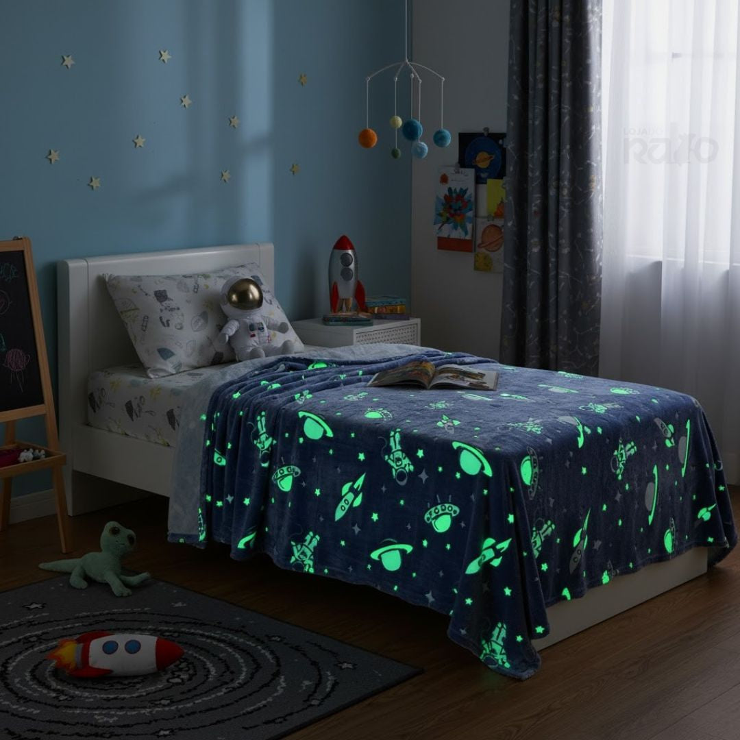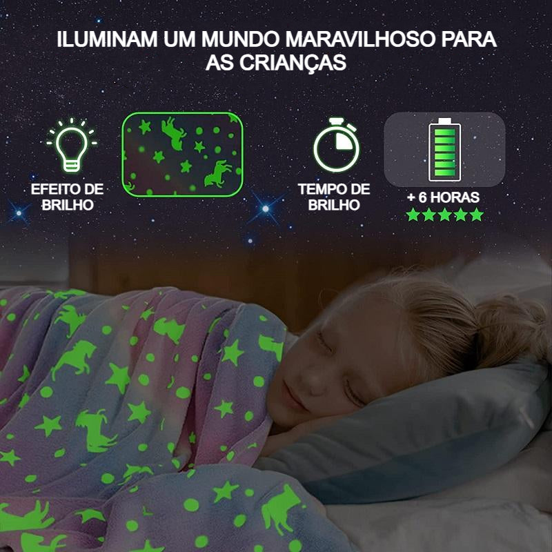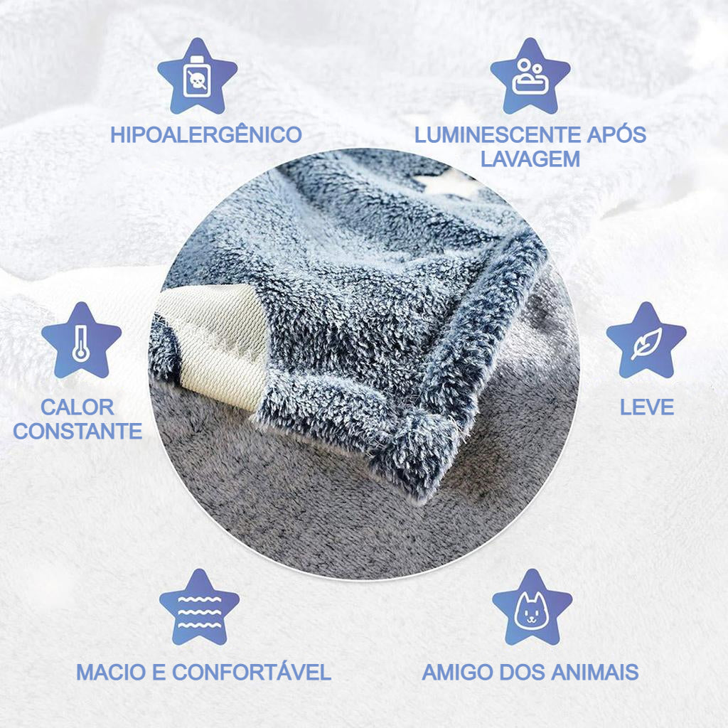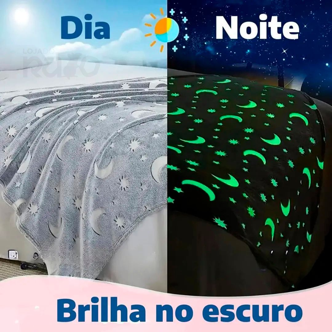 O Cobertor Mágico que Brilha no Escuro foi projetado com estrelas e luas que brilham no escuro na forma mais confortável e aconchegante.