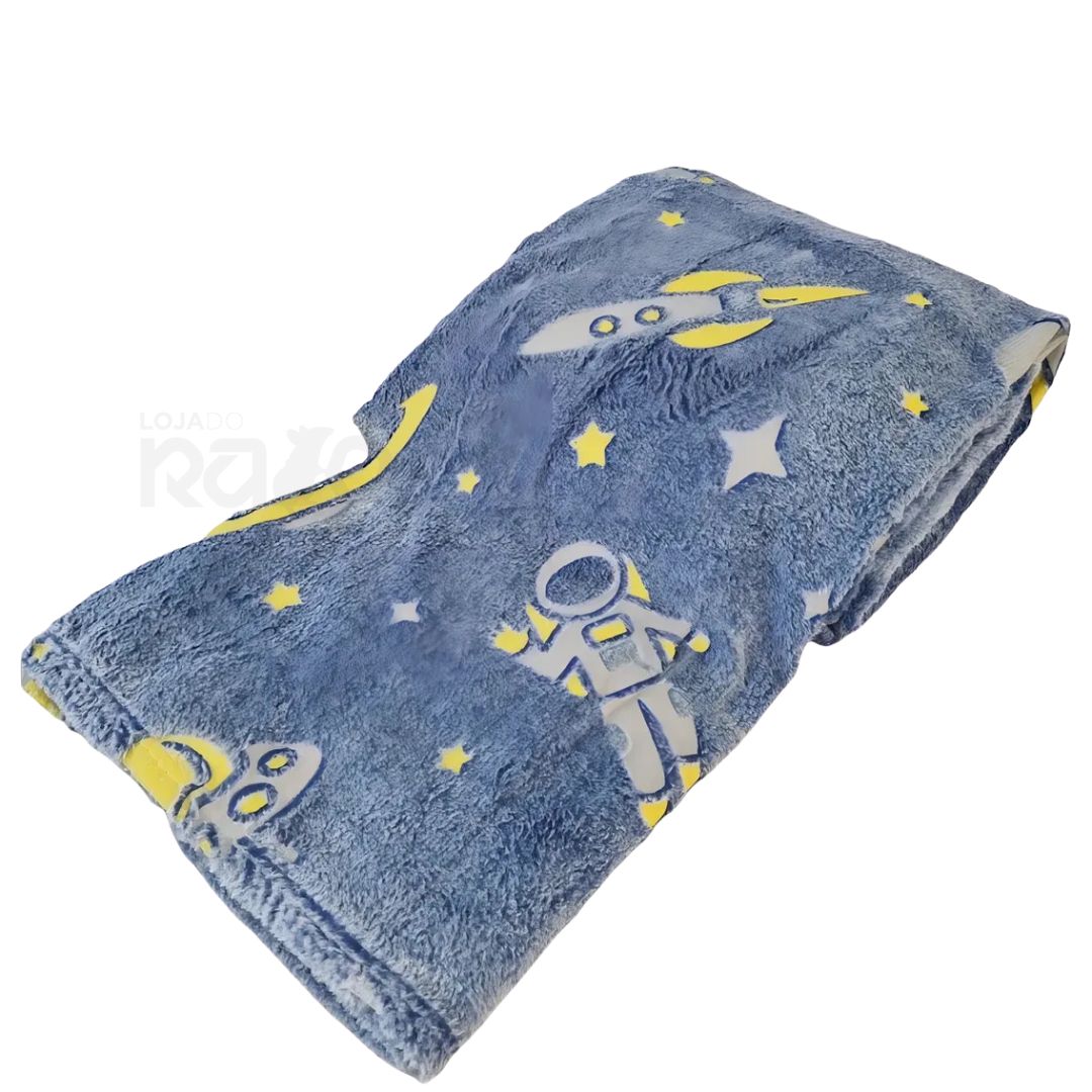 O Cobertor Mágico que Brilha no Escuro com estrelas e luas está disponível em rosa, azul e cinza e mede 127CM X 152CM.