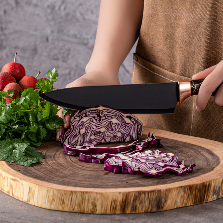 Com lâminas de aço inoxidável 5cr15, um material durável e resistente à corrosão, e com cabos feitos de PP, tornando-se confortável e seguro de utilizar.