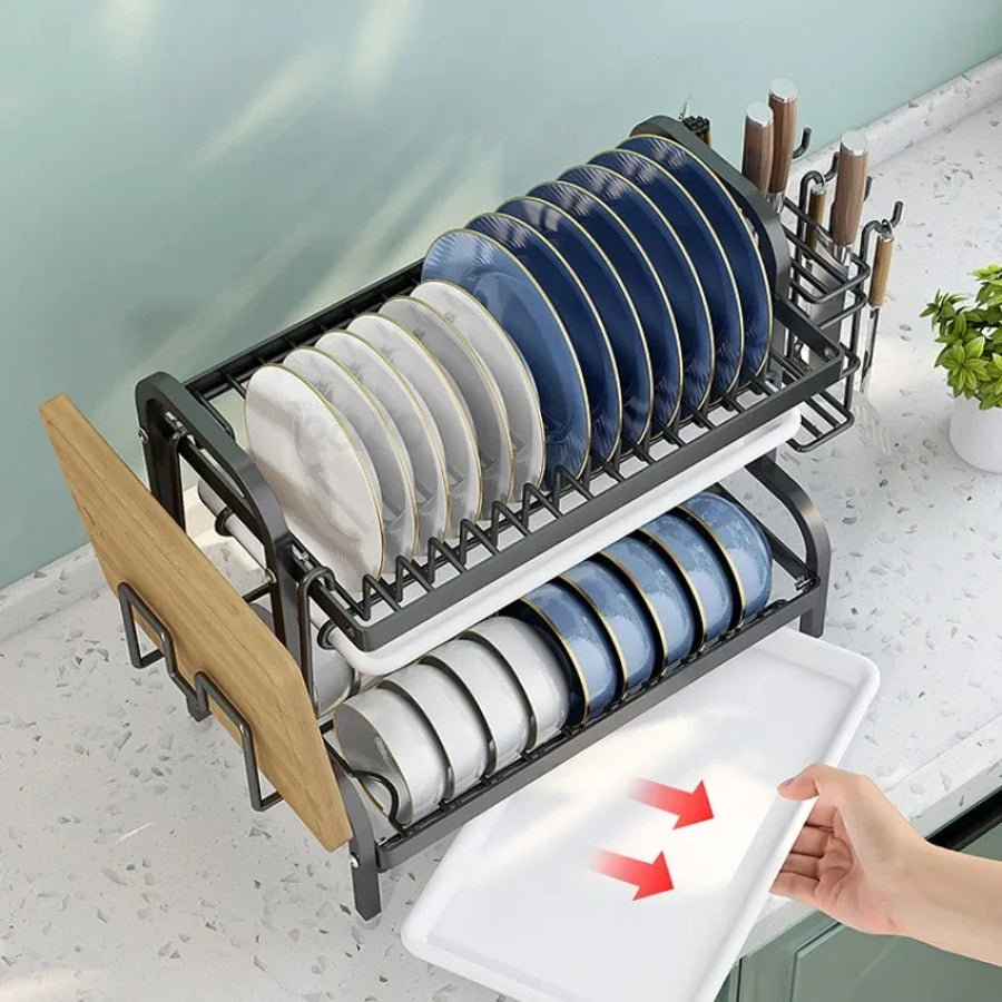Mantenha a sua cozinha organizada e eficiente com o escorredor de louça de 2 andares!