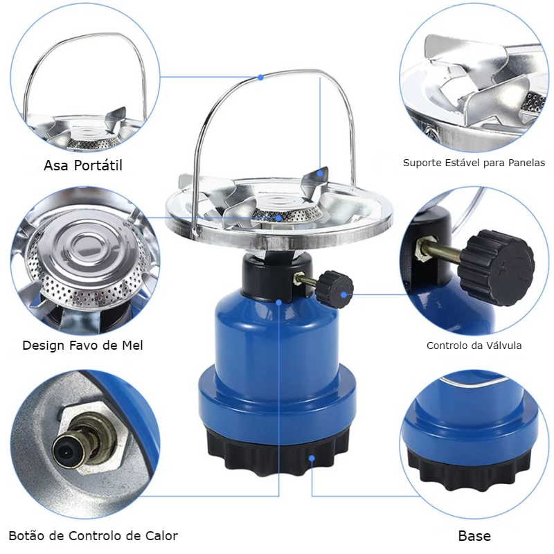 O Fogão Portátil a Gás irá facilitar as suas aventuras no campo, seja num acampamento, numa caminhada ou num piquenique com a família ou amigos.