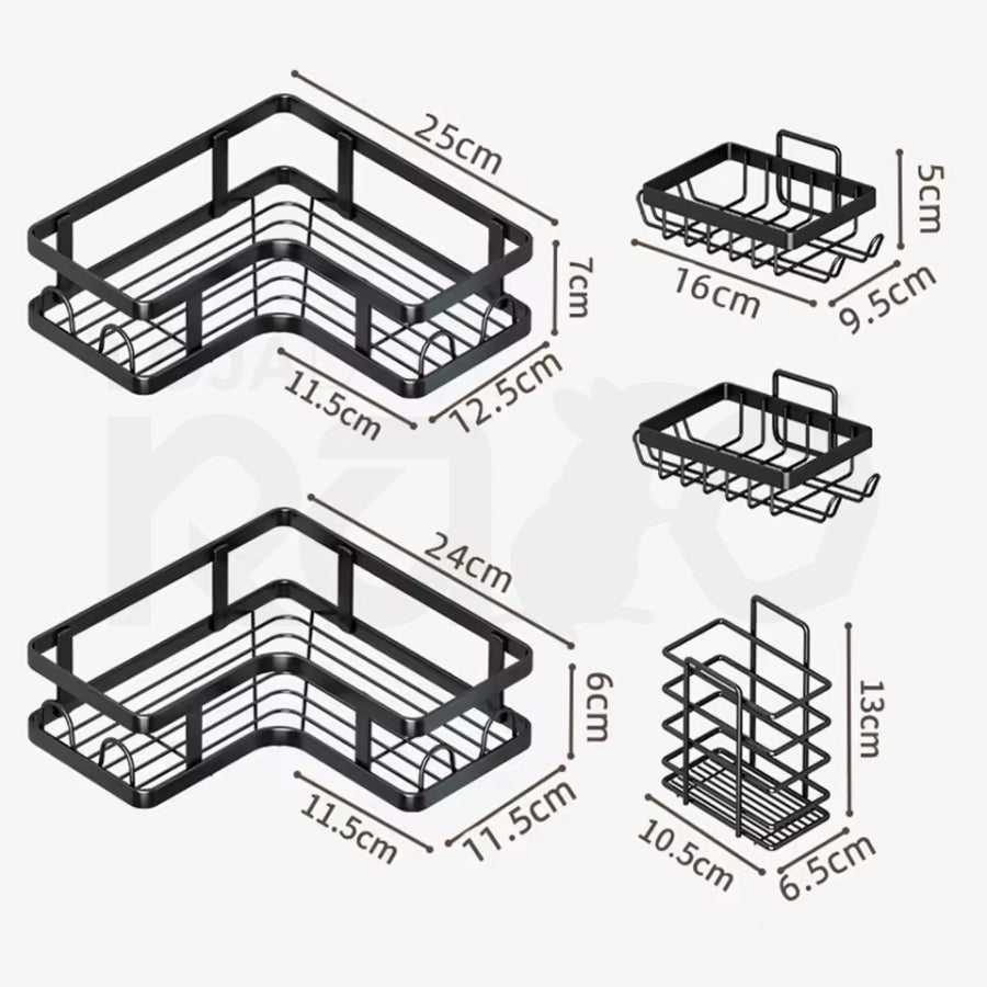 Com o kit de organizadores para duche, nunca mais se terá de preocupar com a desorganização na banheira. Incluído com 2 prateleiras de canto, 1 porta escovas e ainda 2 suportes para sabonete, terá sempre tudo o que precisa à mão e organizado.