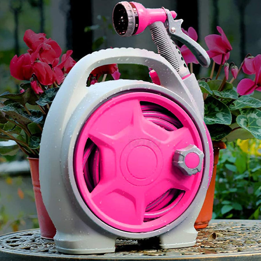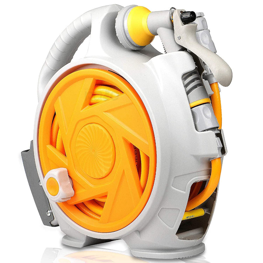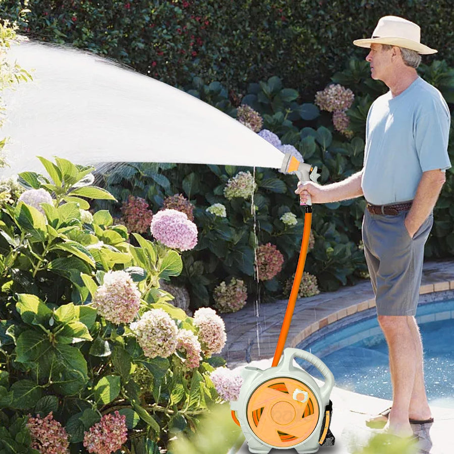 Mantenha o seu jardim sempre bem regado com o kit mangueira enrolador portátil - 15 metros!