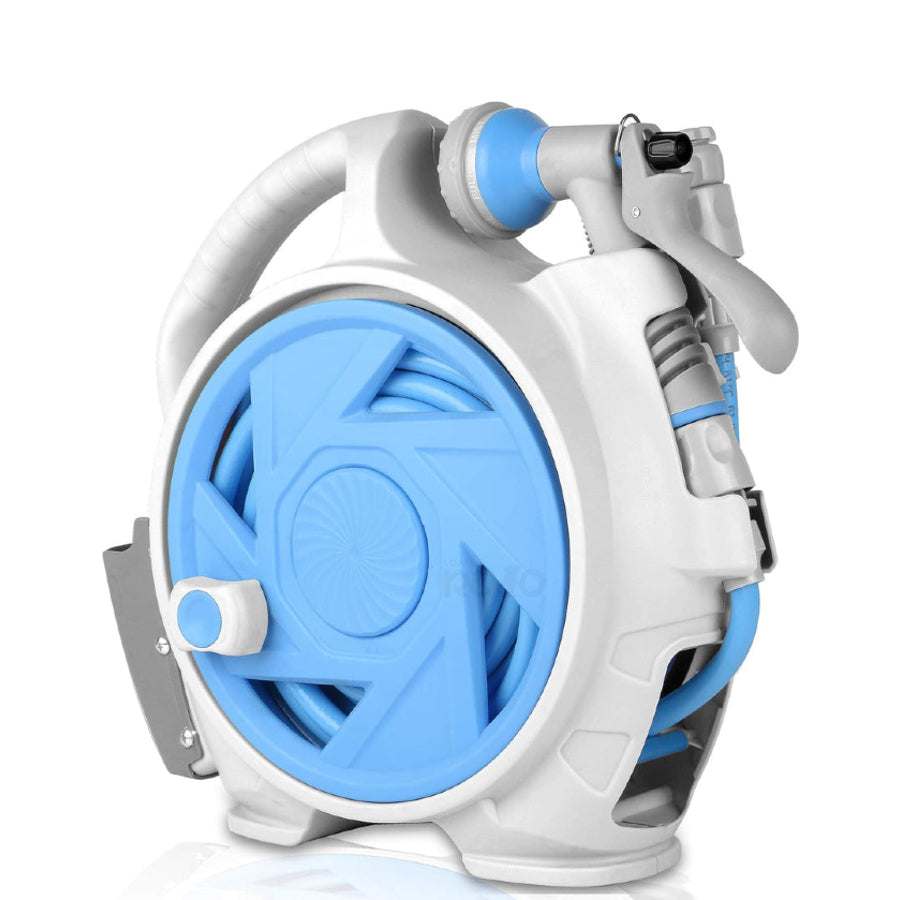 O enrolador manual, permite que armazene a mangueira de forma organizada e sem nós. A ponteira incorporada na mangueira permite-lhe escolher 7 modos de saída de água.