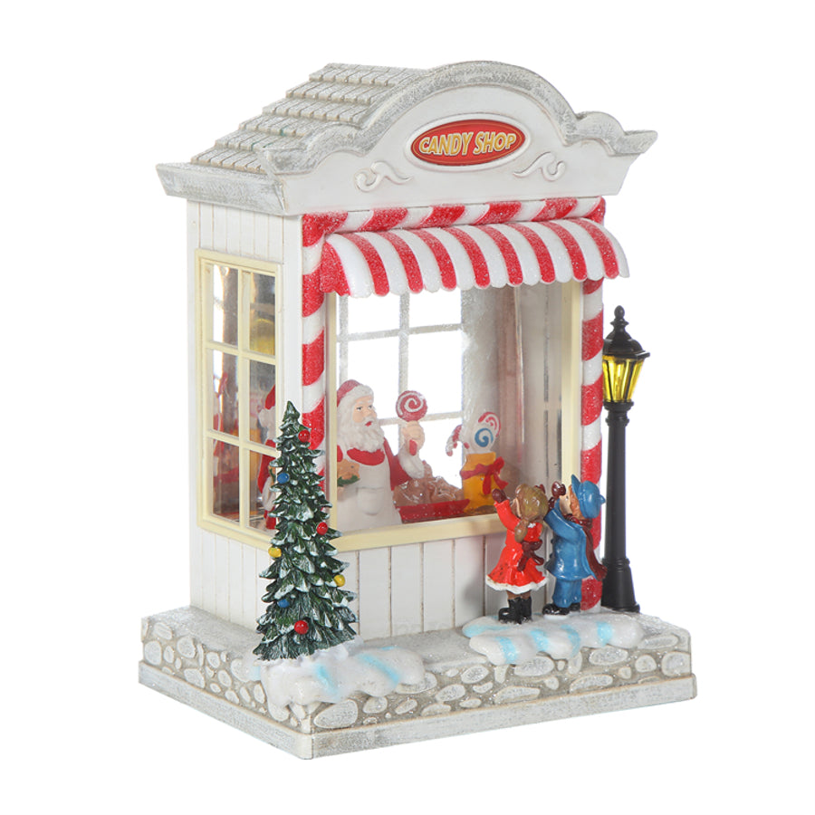 Perfeita para decorar qualquer espaço, esta pequena loja recria a magia da época festiva com luzes suaves que iluminam o ambiente, destacando todos os detalhes encantadores da peça.
