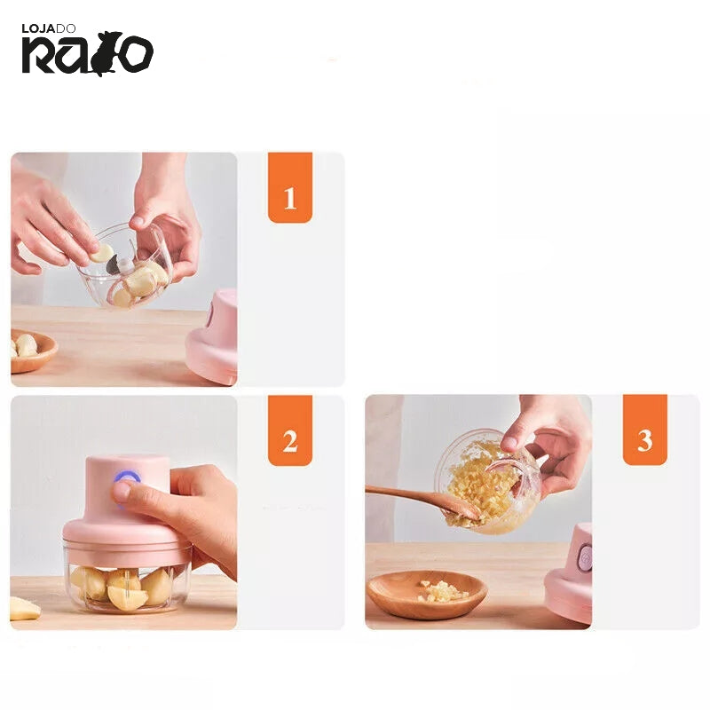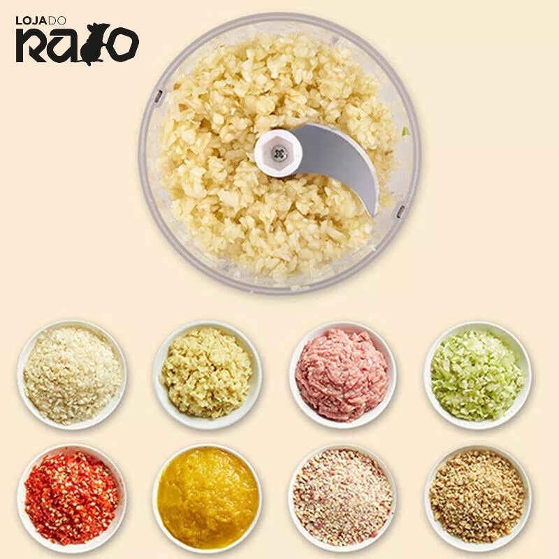 A nossa Mini Picadora elétrica é um utensílio de cozinha rápido para picar o alho, tempero, nozes, legumes e muito mais!