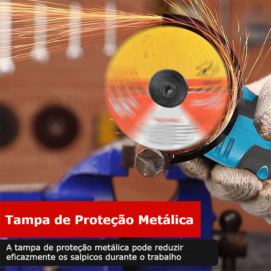 Contém uma proteção contra os salpicos de metais durante a sua utilização. A sua velocidade de rotação de 19500rpm, permite-lhe que realiza os trabalhos sem dificuldades e de forma rápida.