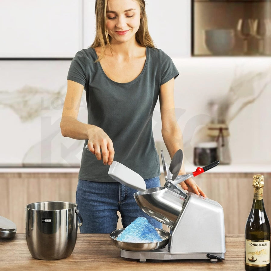 Este aparelho é essencial para qualquer festa ou evento, permitindo-lhe transformar cubos de gelo em gelo triturado em segundos. Desfrute de cocktails, sumos e outras bebidas geladas com gelo perfeitamente triturado para uma experiência de sabor incomparável.