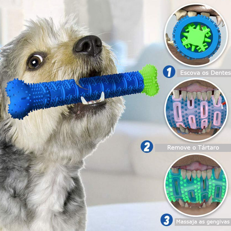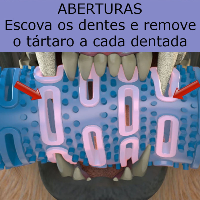 O brinquedo multifuncional é o aliado perfeito para o seu cão, visto que para além de este dar para o animal brincar, ajudará a escovar os dentes enquanto ele roi.