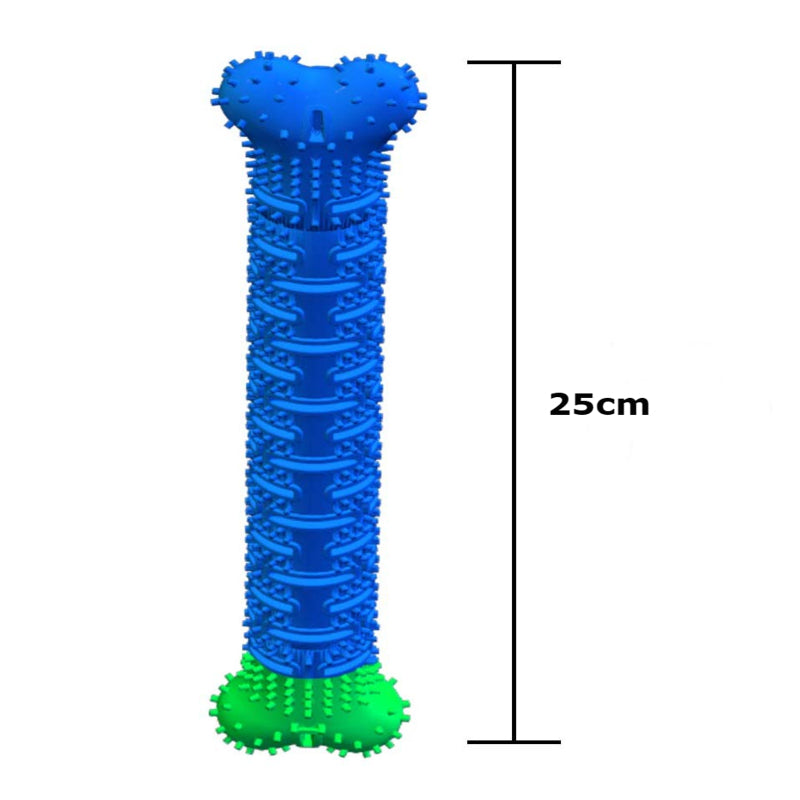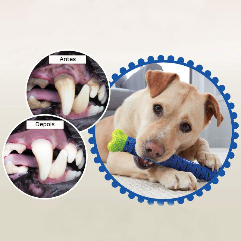Não sofra mais com a luta de escovar os dentes do seu cão! Este brinquedo funciona como escova de dentes, sendo projetada perfeitamente para a anatomia do seu cão. O seu cão vai divertir-se e brincar enquanto escova os dentes.