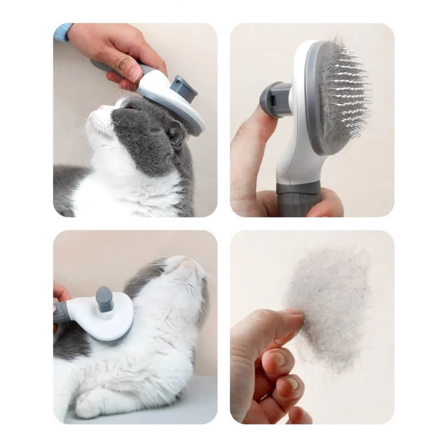 Com um simples pressionar de botão, os pelos presos na escova são rapidamente removidos das cerdas.