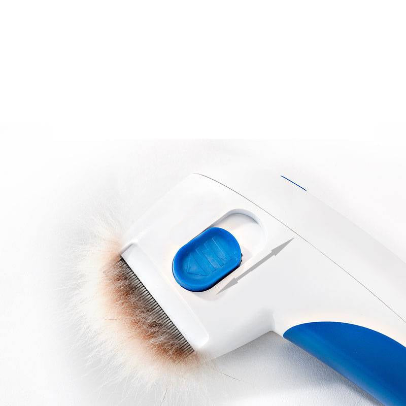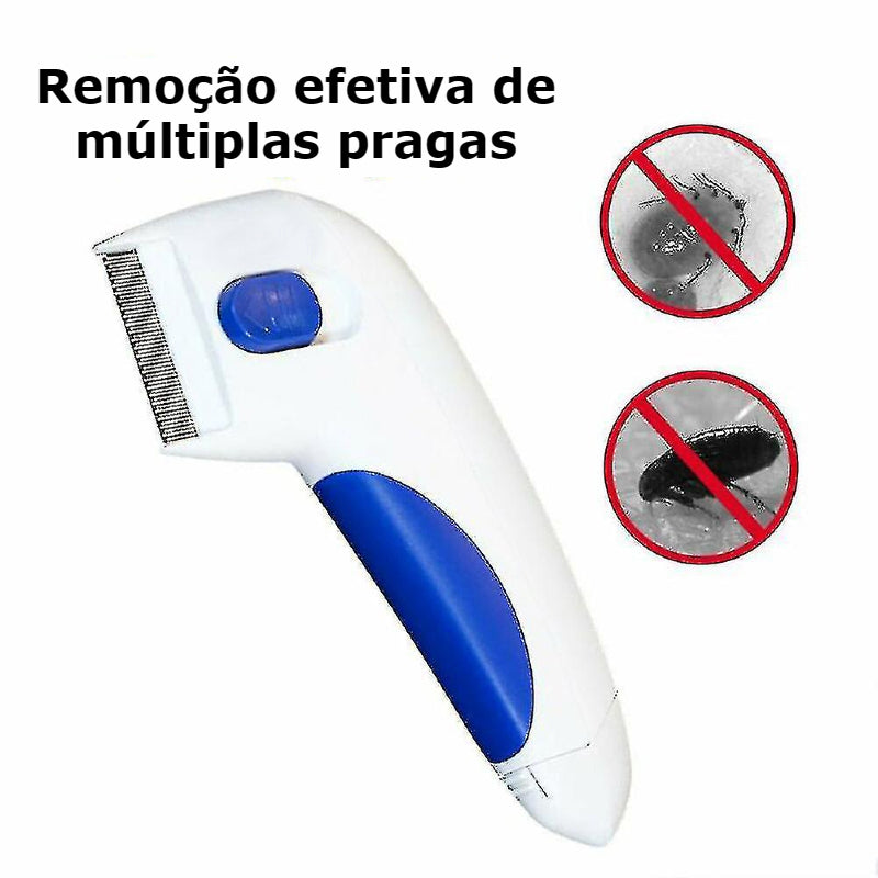Remova pulgas do seu cão ou gato sem produtos químicos, pesticidas ou toxinas. Basta pentear o seu animal de estimação, o pente liberta uma leve carga elétrica que atordoa e mata as pulgas sem dor para o animal. Os resultados ficam à vista dos olhos, pois as pulgas ficam no pente e terá de as remover.