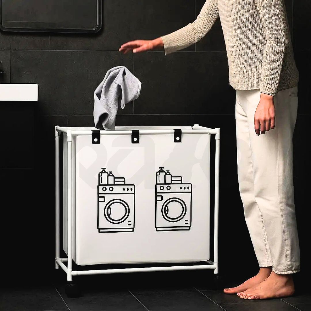 O Cesto de Roupa Suja Dobrável com Rodas foi concebido para o uso diário: guardar a roupa usada de forma organizada e prática.