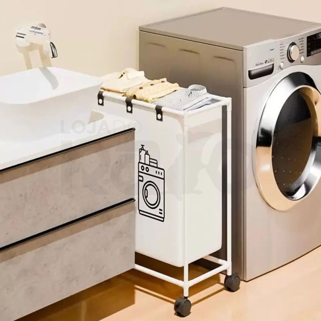 Cesto de Roupa Suja Dobrável com Rodas