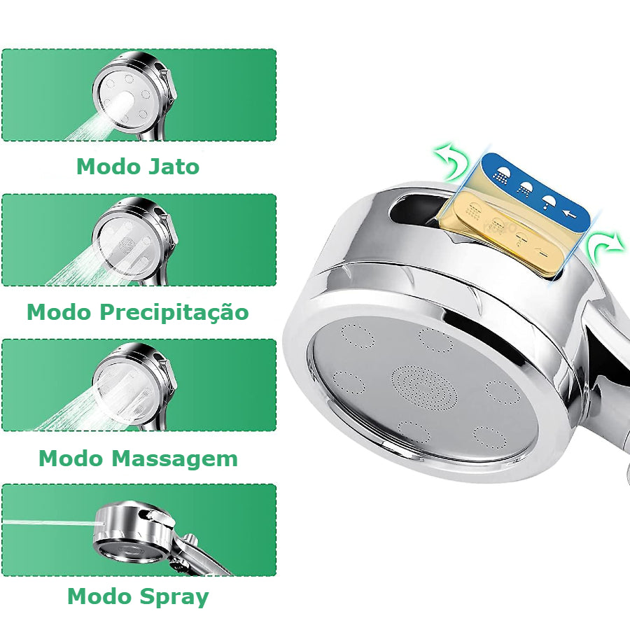 Contém 4 modos de saída, um modo de spray, um de jato, massagem e precipitação.