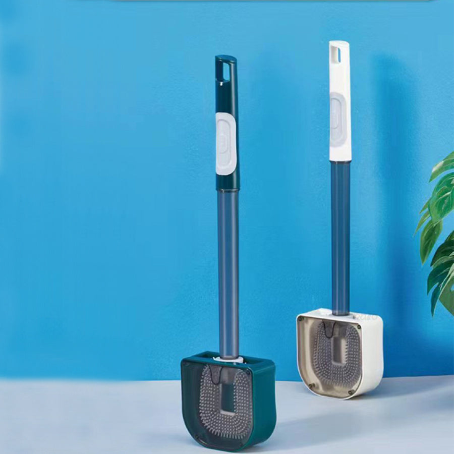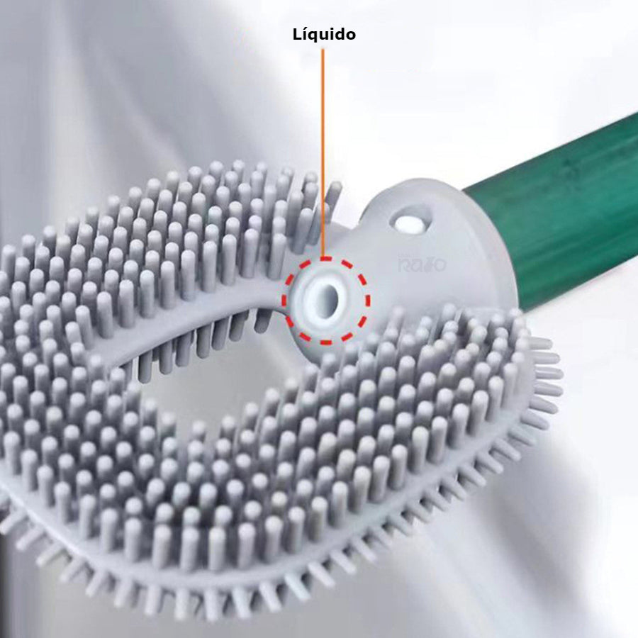 Com a escova de limpeza, limpar a casa de banho nunca foi tão fácil. Contém um depósito na parte superior em que pode colocar detergente ou água, e depois pressionar no meio da escova para que o líquido saia enquanto limpa.