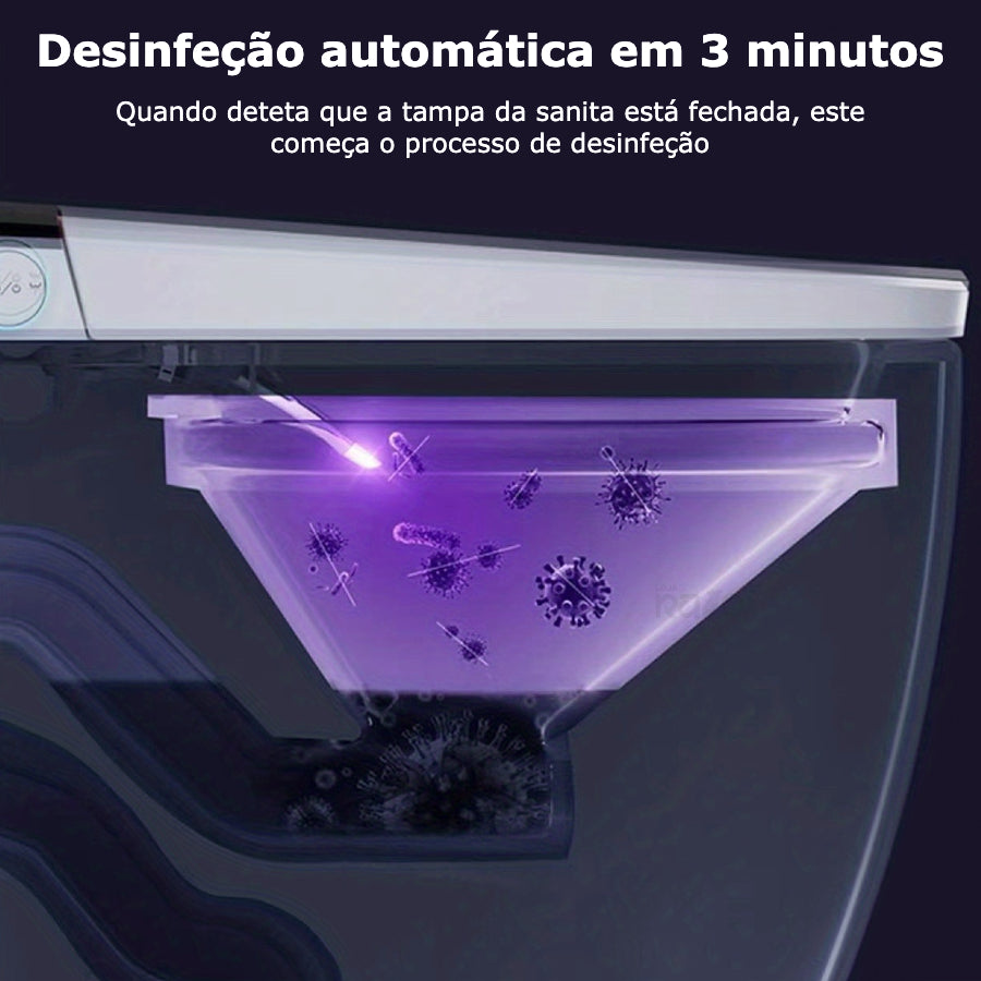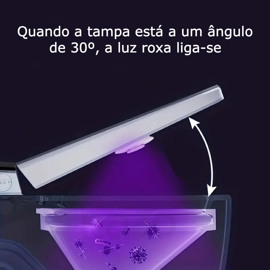 Quando a tampa da sanita está abaixo dos 30º, a luz acende automaticamente, para quando a tampa estiver completamente fechada começar o processo de desinfeção durante 3 minutos.