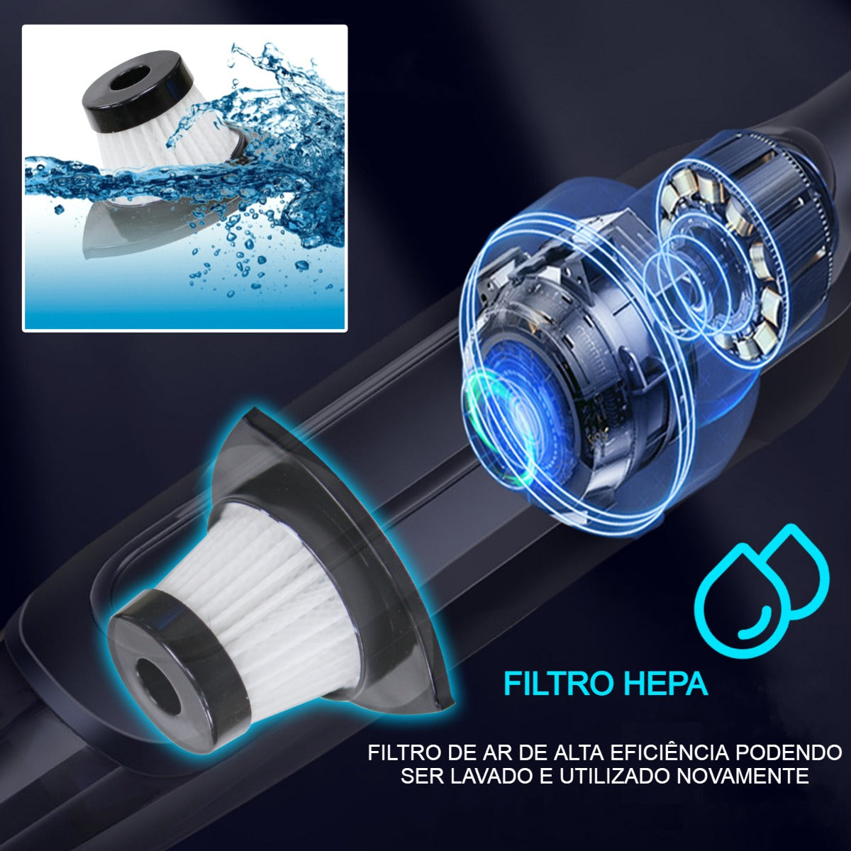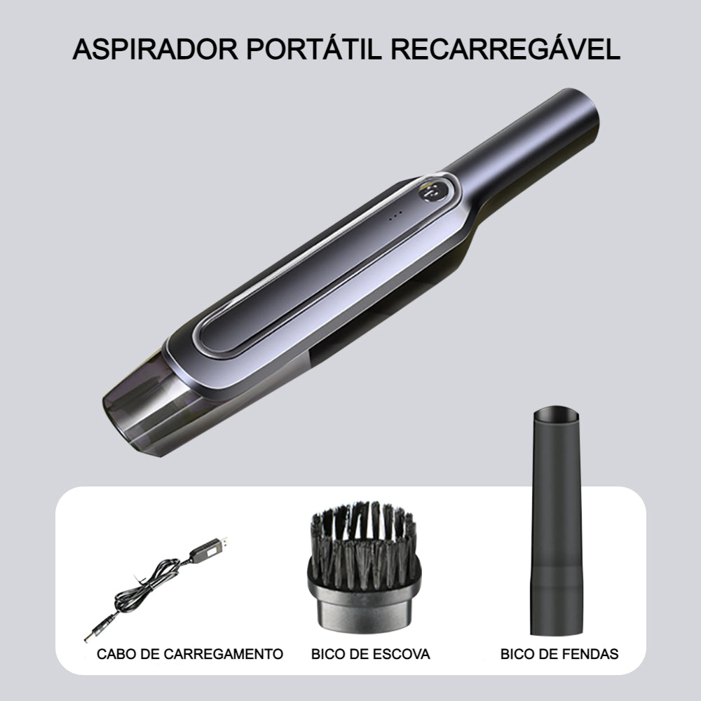 Com a ajuda deste Aspirador Portátil Recarregável vai conseguir manter a sua habitação e carro sempre limpos. É um equipamento versátil com um elevado poder de sucção.