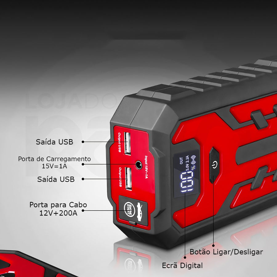Com a Bateria Multifuncional poderá recarregar a bateria do seu carro e continuar o seu caminho. É fácil de usar e funciona em todos os tipos de veículos alimentados por baterias de 12V, incluindo carros.