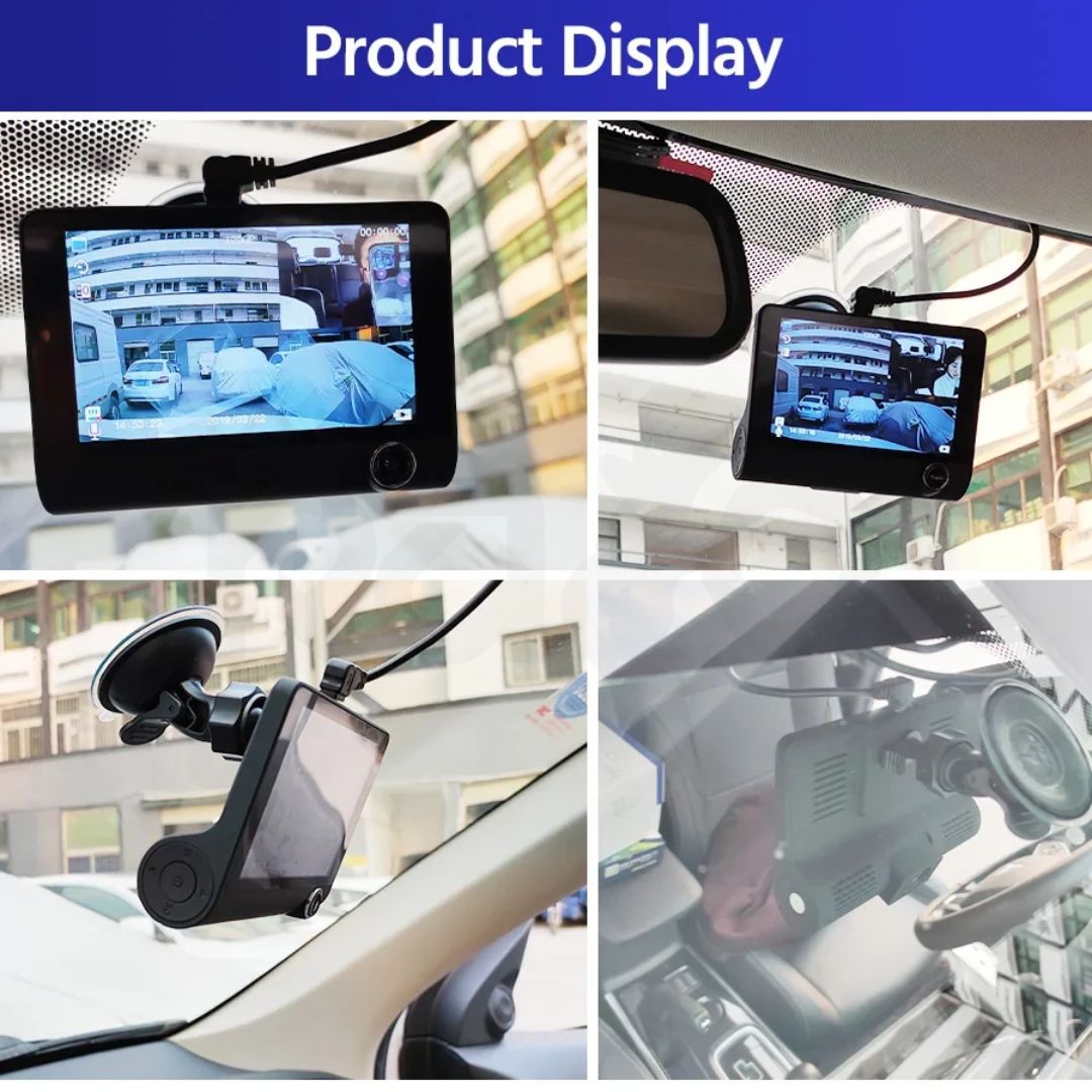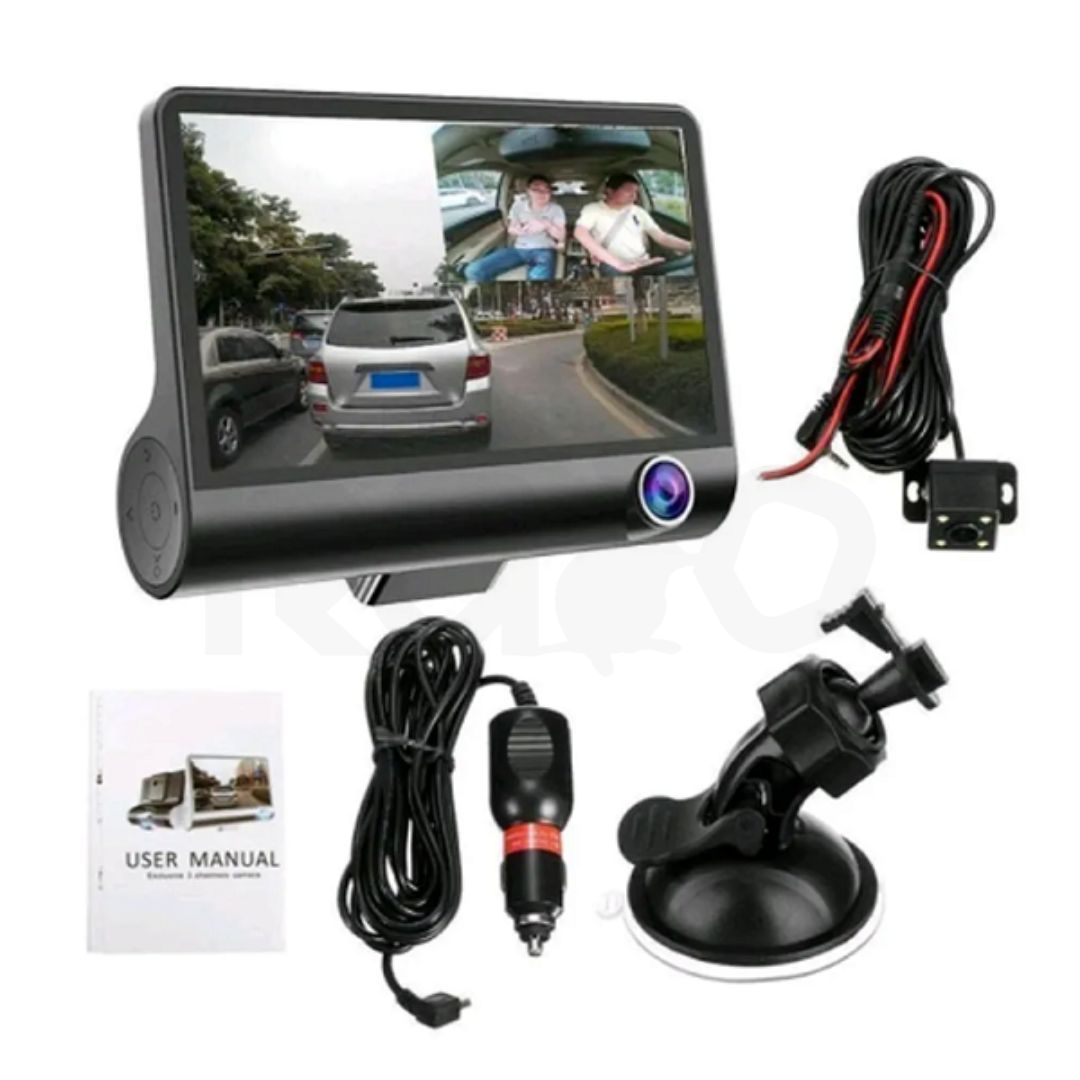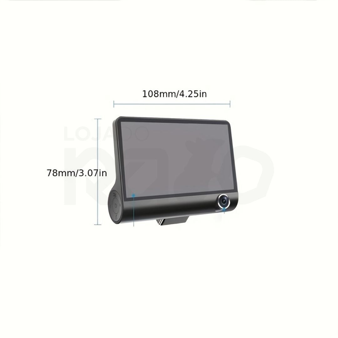 ✅ Cobertura total com 3 lentes — frontal (1080 p, 170°), interior (640 × 480, 120°) e traseira (640 × 480, 140°).