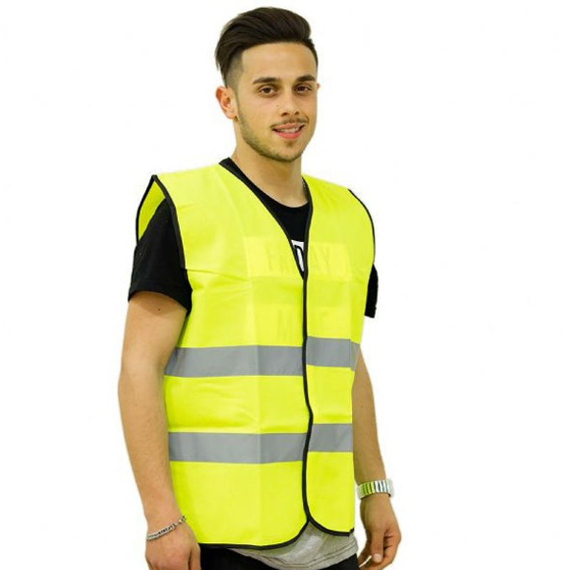 Contornos das bainhas em polyester preto. Costura de 50mm nas faixas refletoras.