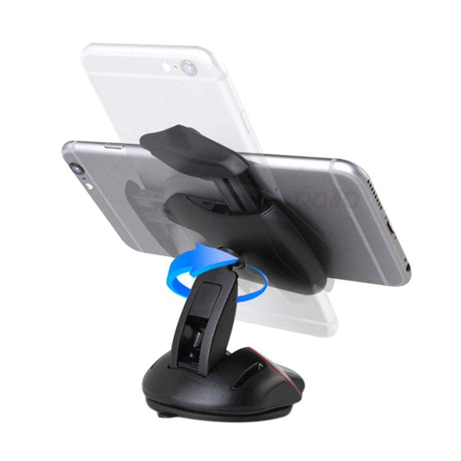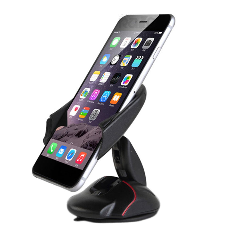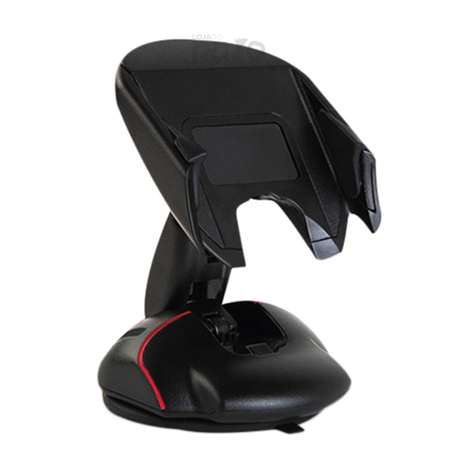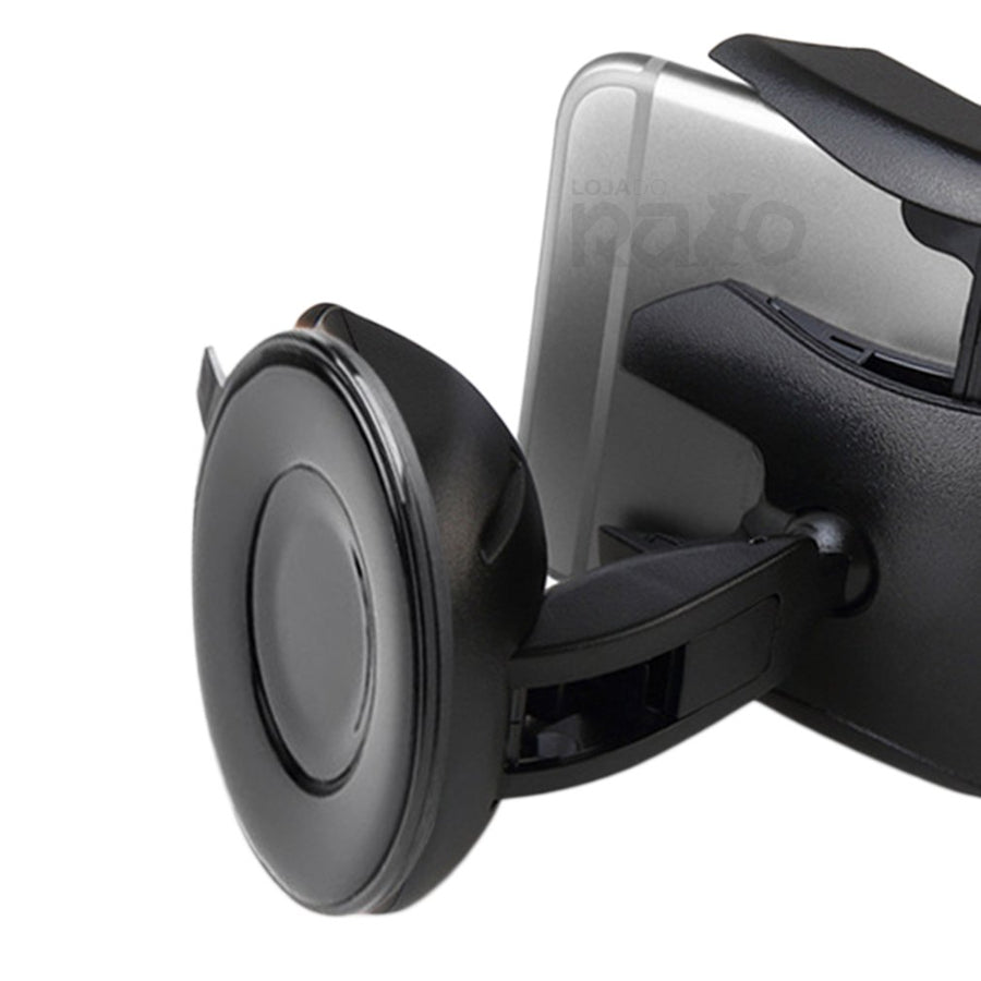 Instalação através de ventosa, podendo colocar no vidro ou painel frontal do carro, e pode também ser utilizado em mesas.