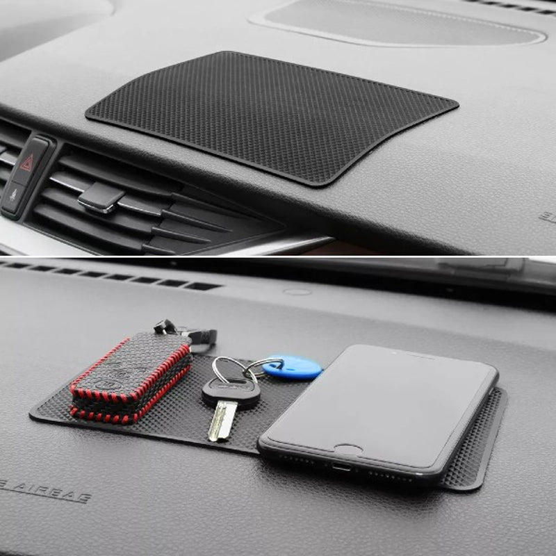 Com um design anti reflexo e flexível, o tapete antiderrapante é ideal para colocar objetos no tablier do carro. Consegue manter os objetos perto e em segurança, pois o material do tapete impede que os mesmos caiam.