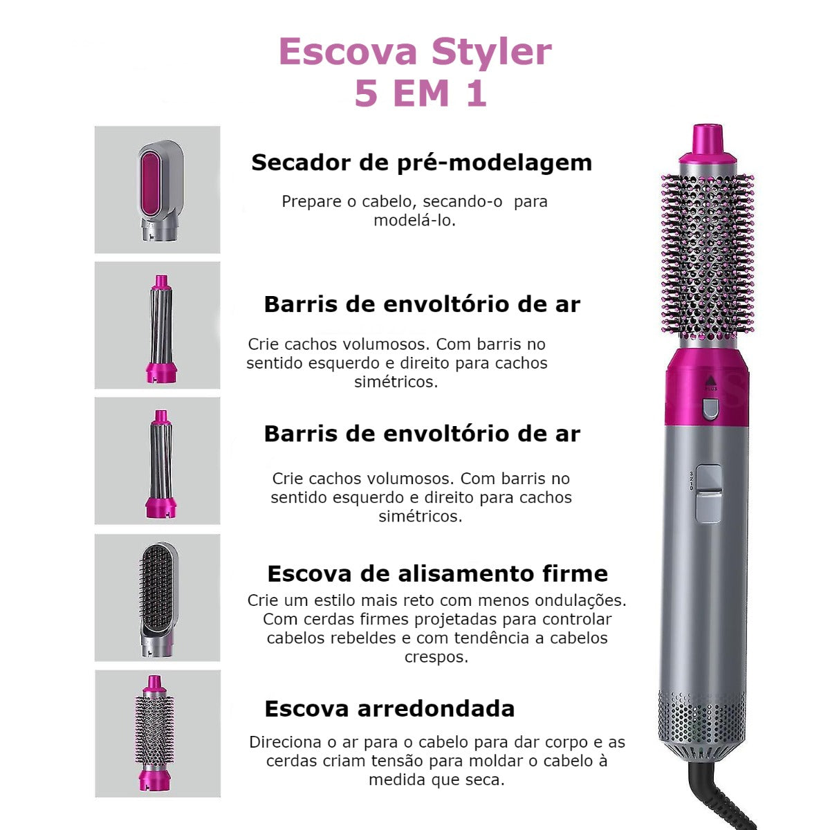 A Escova Styler 5 em 1 é a aliada perfeita para transformar o seu visual com facilidade e sem danificar o cabelo.