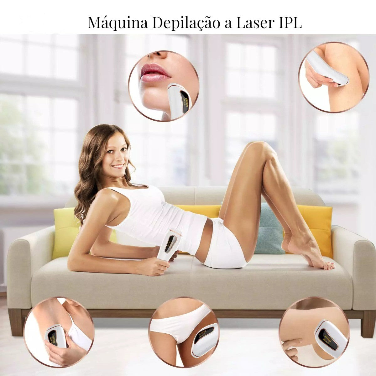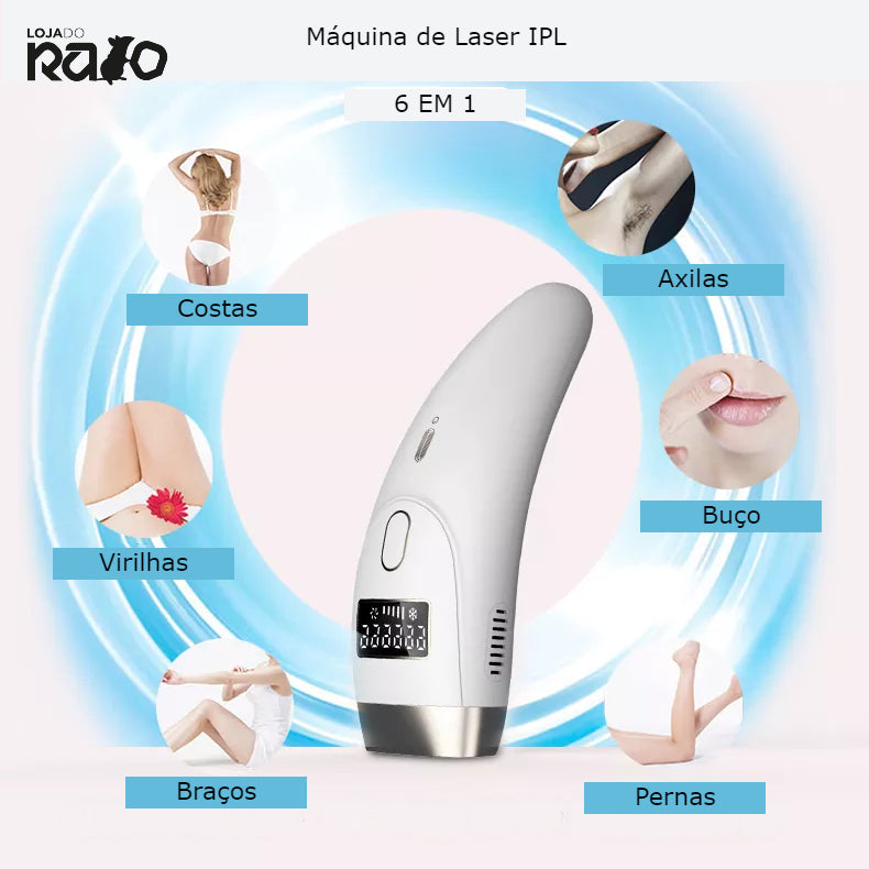 A Máquina de Depilação a Laser IPL oferece uma solução eficaz, indolor e segura para eliminar os pêlos indesejáveis de forma duradoura. Ideal tanto para mulheres como para homens, pode ser usada em todo o corpo — incluindo rosto, axilas, pernas, virilhas e mais.