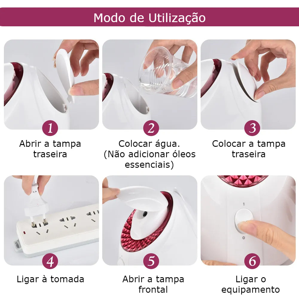 4- Direcione o vapor para o rosto, mantendo uma distância de cerca de 20 cm