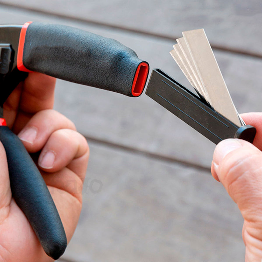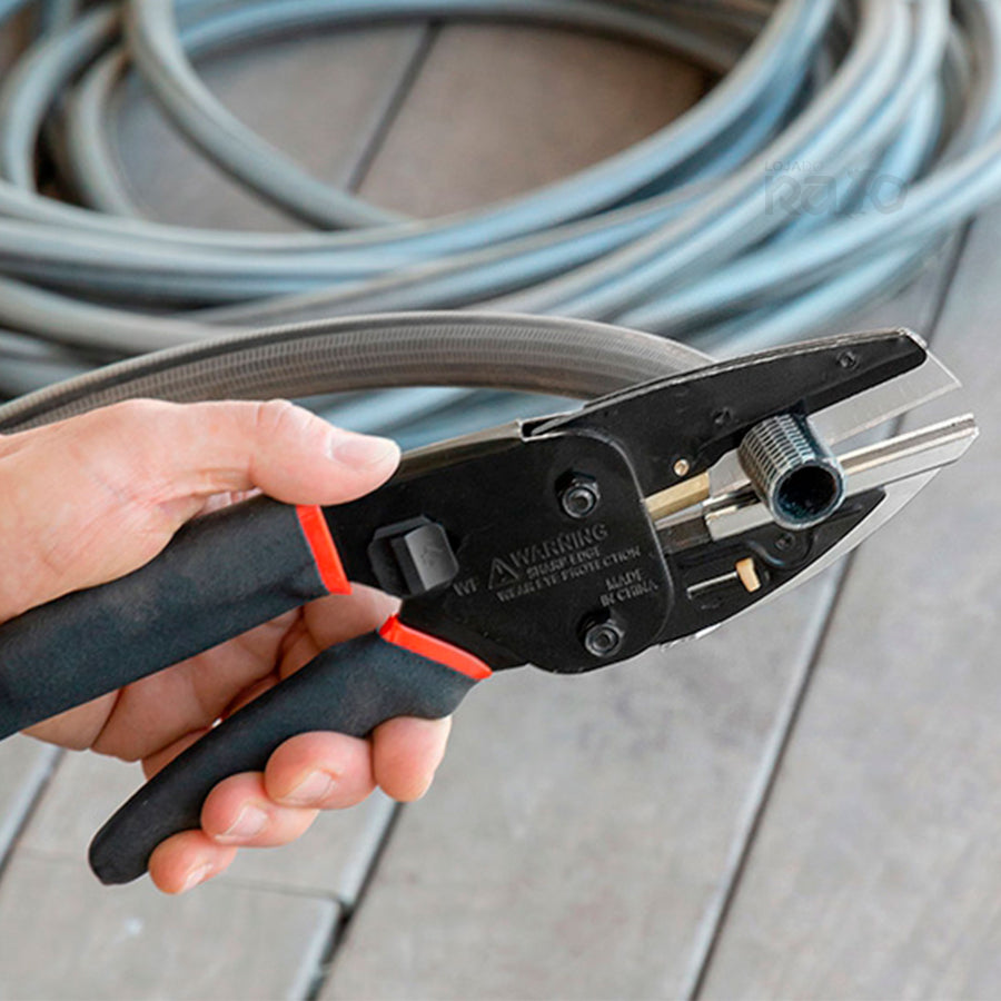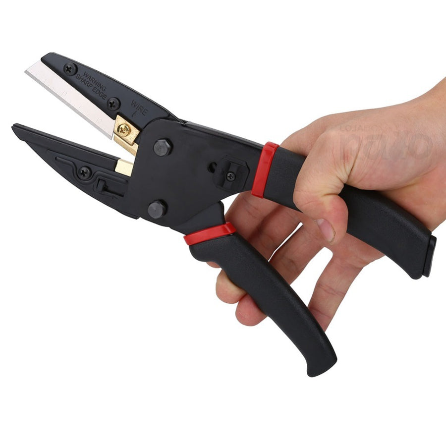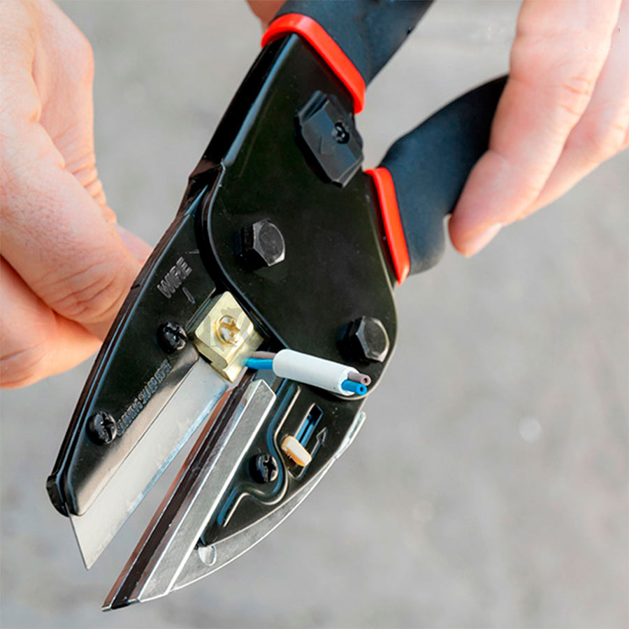 O design desta ferramenta de corte combina, numa só, três tios de utilizações. Destaca-se dos convencionais alicates e tesouras, uma vez que permite cortar muito mais que folhas de papel, tecidos ou plásticos.