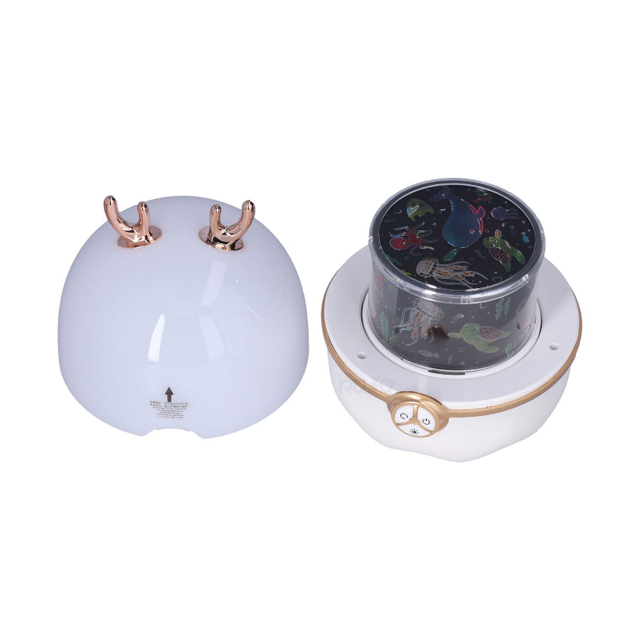 Crie um ambiente mágico e envolvente no quarto das crianças com o candeeiro giratório. Este projeta diferentes desenhos na parede e teto.