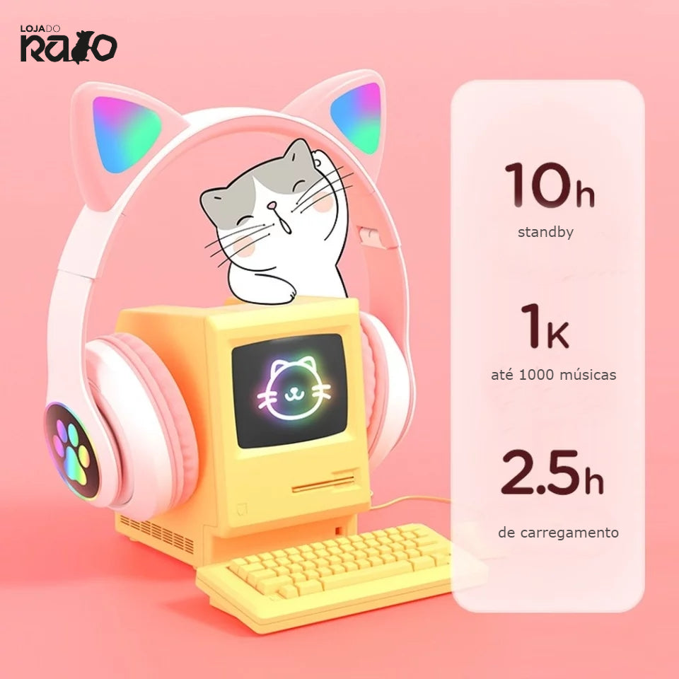 Os Headphones LED possui um design de orelha de gato com leds brilhantes. Um ótimo presente para crianças e fãs de cosplay.