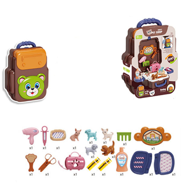 - 1x Mochila 2 em 1 com 20 Acessórios variados (animais de estimação, secador, pente, tesoura, autocolantes, entre outros)