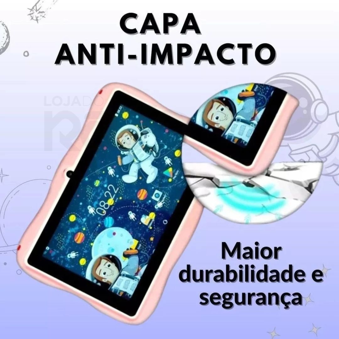 Este Tablet é perfeito para crianças curiosas, criativas e cheias de energia! Com um design lúdico de astronauta e uma estrutura super resistente, ele oferece uma experiência segura, divertida e cheia de recursos tecnológicos que estimulam a aprendizagem o e o desenvolvimento infantil.