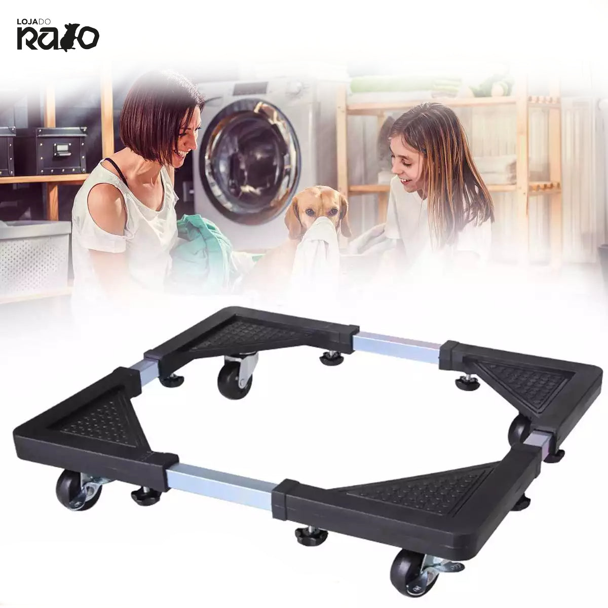 Base móvel multifuncional com 4 rodas para transportar facilmente de um lado para outro os seus eletrodomésticos como máquina de lavar/secar e figorífico.