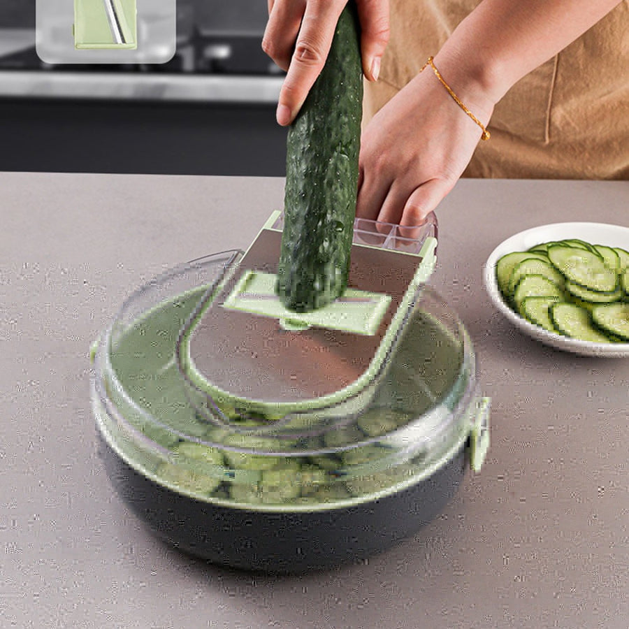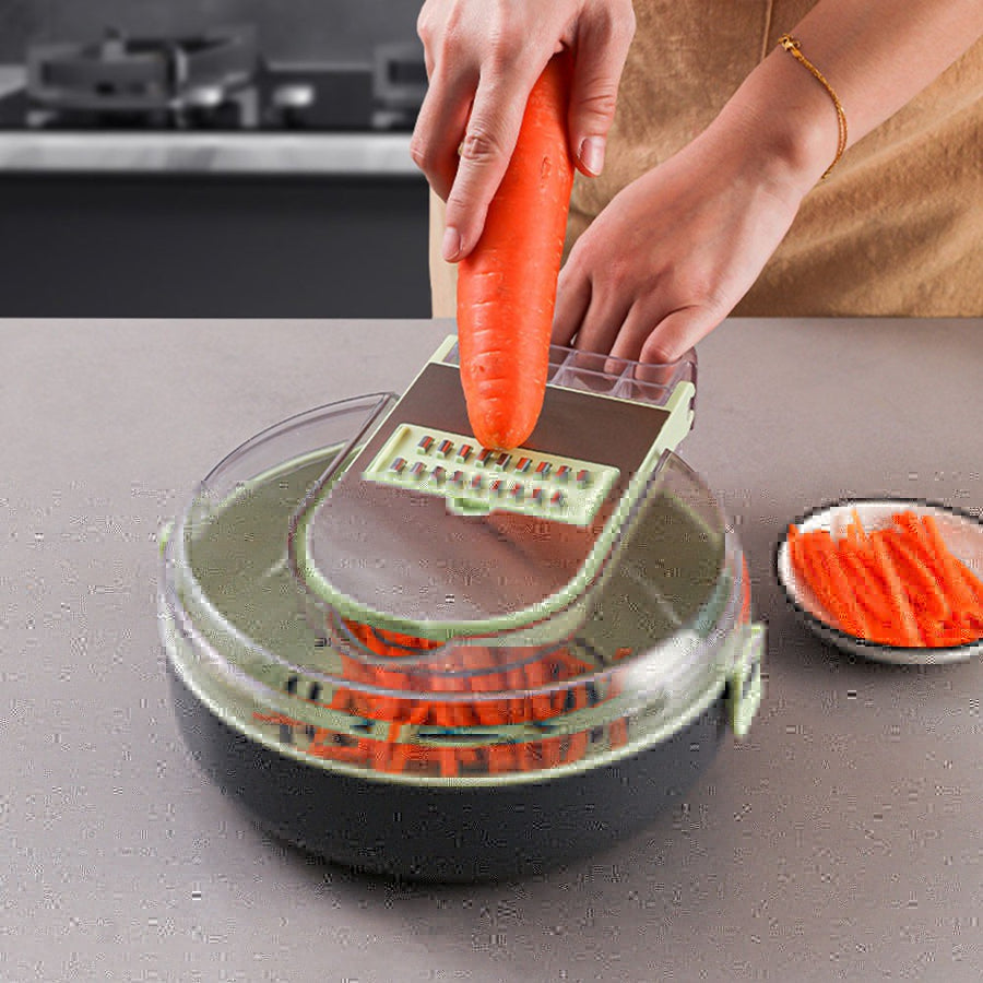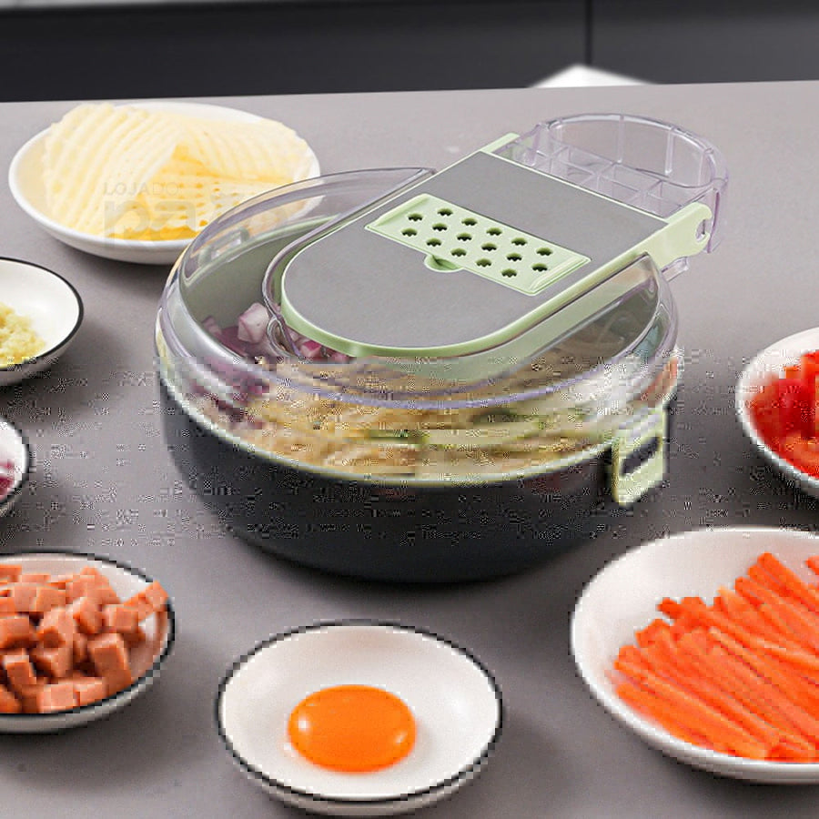 Facilite a preparação das suas refeições com o cortador de vegetais multifuncional 9 em 1!