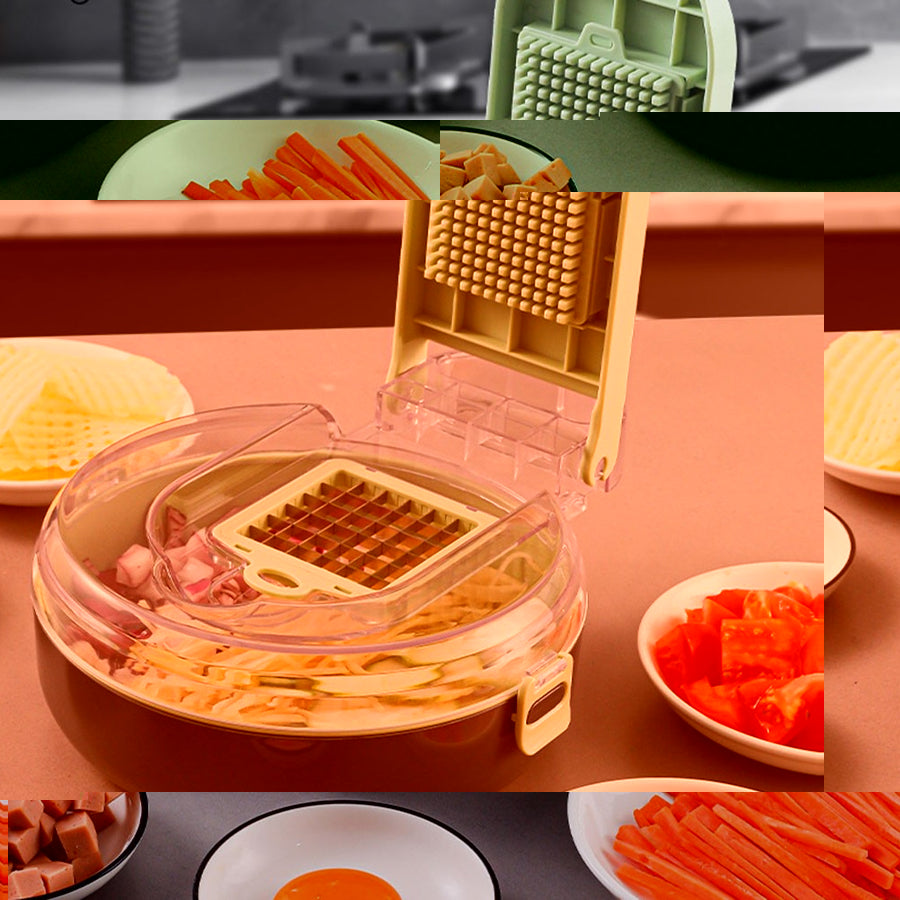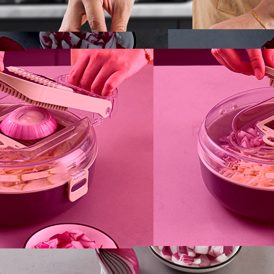 Um cortador de vegetais 9 em 1 um essencial de cozinha para cortar, picar ou fatiar vegetais de forma rápida e eficiente.