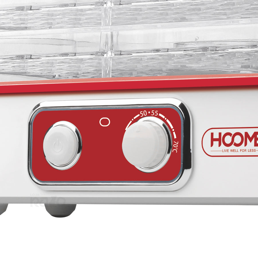 Este prático aparelho permite desidratar frutas, legumes e muito mais, preservando os nutrientes e intensificando os sabores. Com cinco tabuleiros espaçosos, oferece uma grande capacidade para desidratar vários alimentos simultaneamente. O motor de 240W garante um desempenho eficiente e uniforme, enquanto o controle de temperatura ajustável permite personalizar o processo de desidratação conforme as suas necessidades.