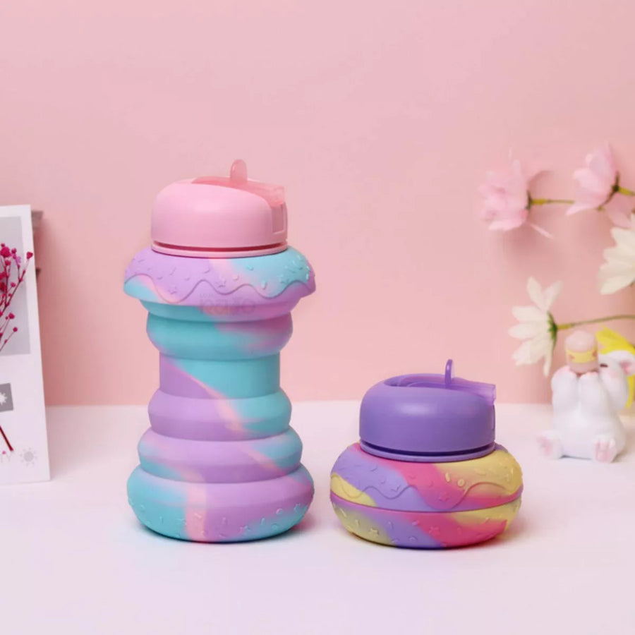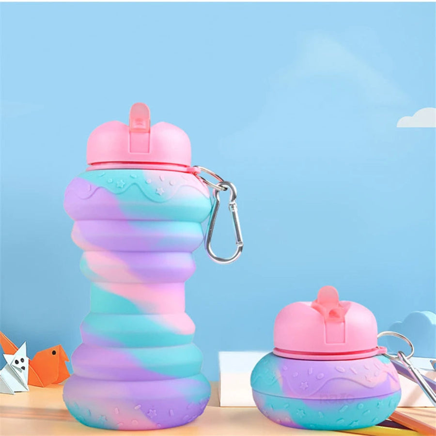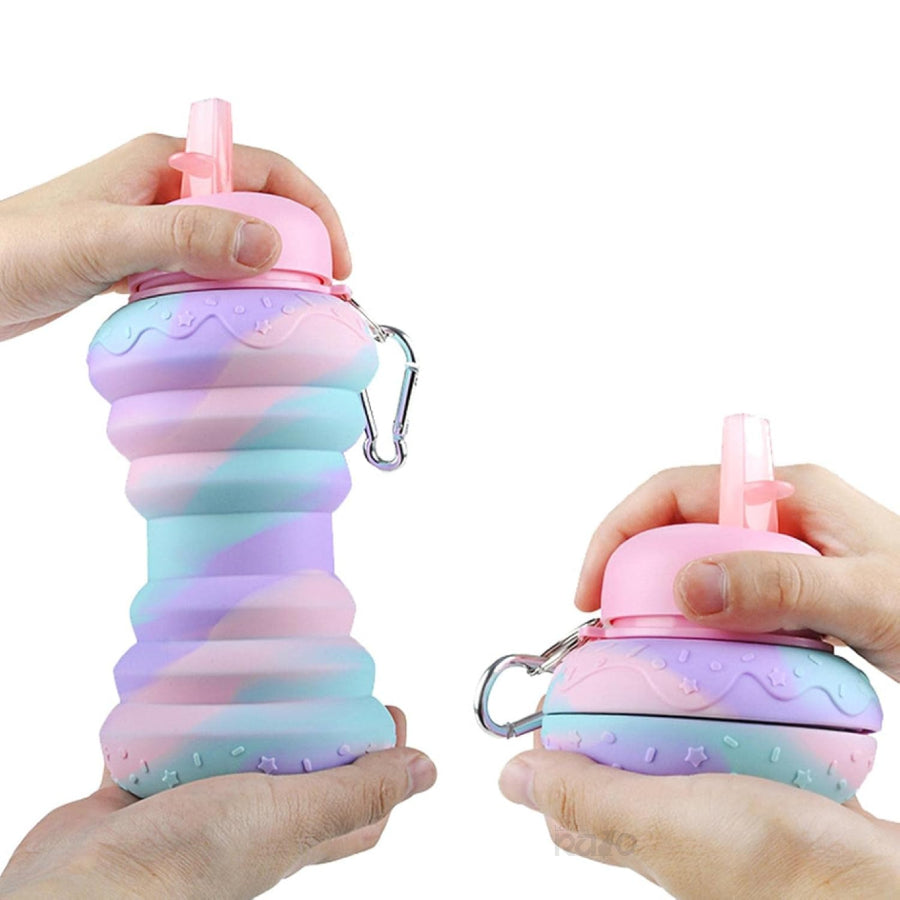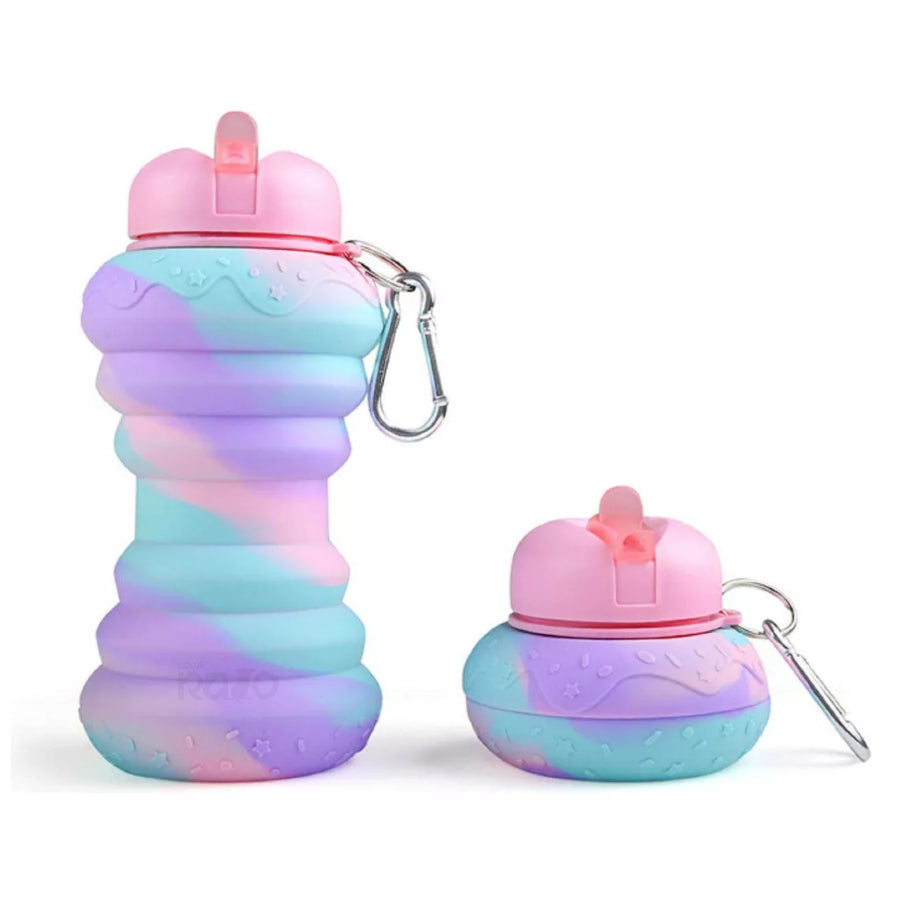 Mantenha-se sempre hidratado com a garrafa dobrável, contém uma capacidade de 600ml quando está totalmente aberta.