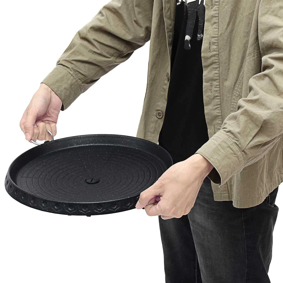 Com este Grelhador Redondo pode confecionar os seus pratos de forma saudável sem necessidade de recorrer a azeite ou óleo pois a sua superfície é antiaderente. Concebido com duas pegas para facilitar o seu transporte e poder usá-lo dentro ou fora de casa, como em piqueniques ao ar livre, churrascos, etc.