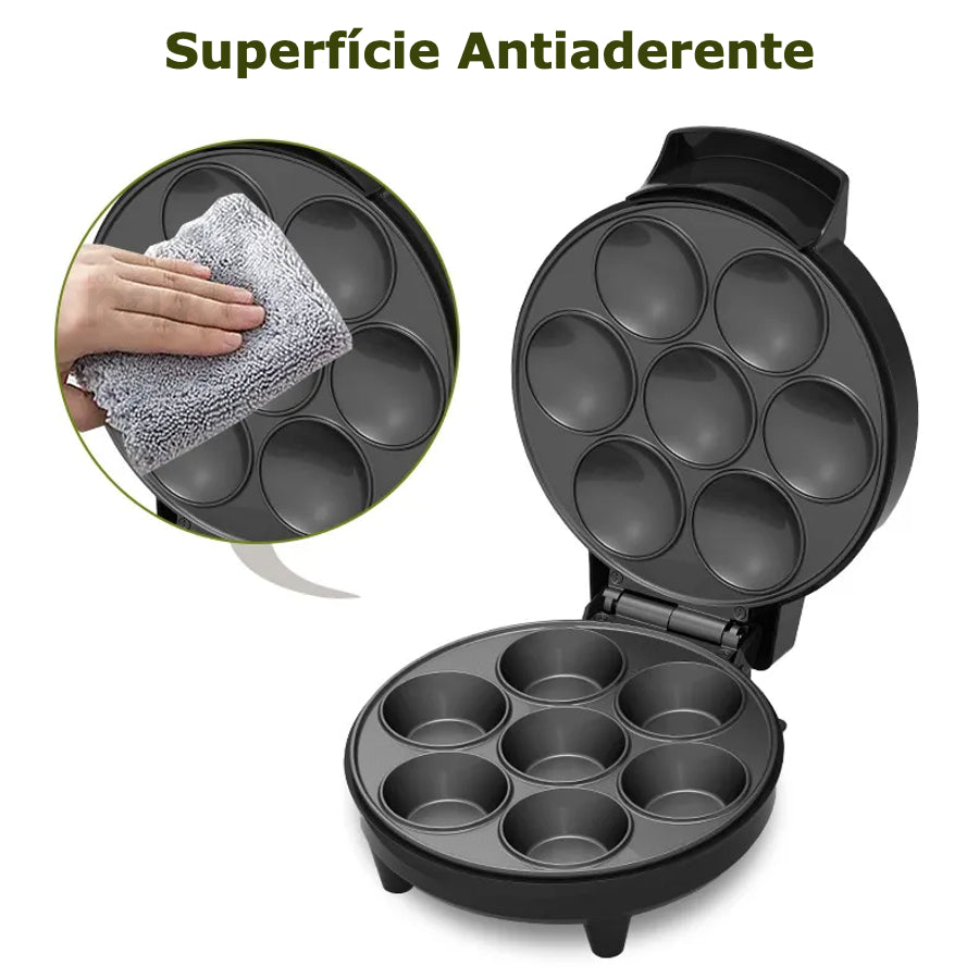 Com este aparelho prático e versátil, preparar deliciosos queques nunca foi tão fácil e rápido. O aquecimento de dupla face e superfície antiaderente, não terá de se preocupar com a cozedura dos queques, nem se estes poderão ficar colados na superfície.