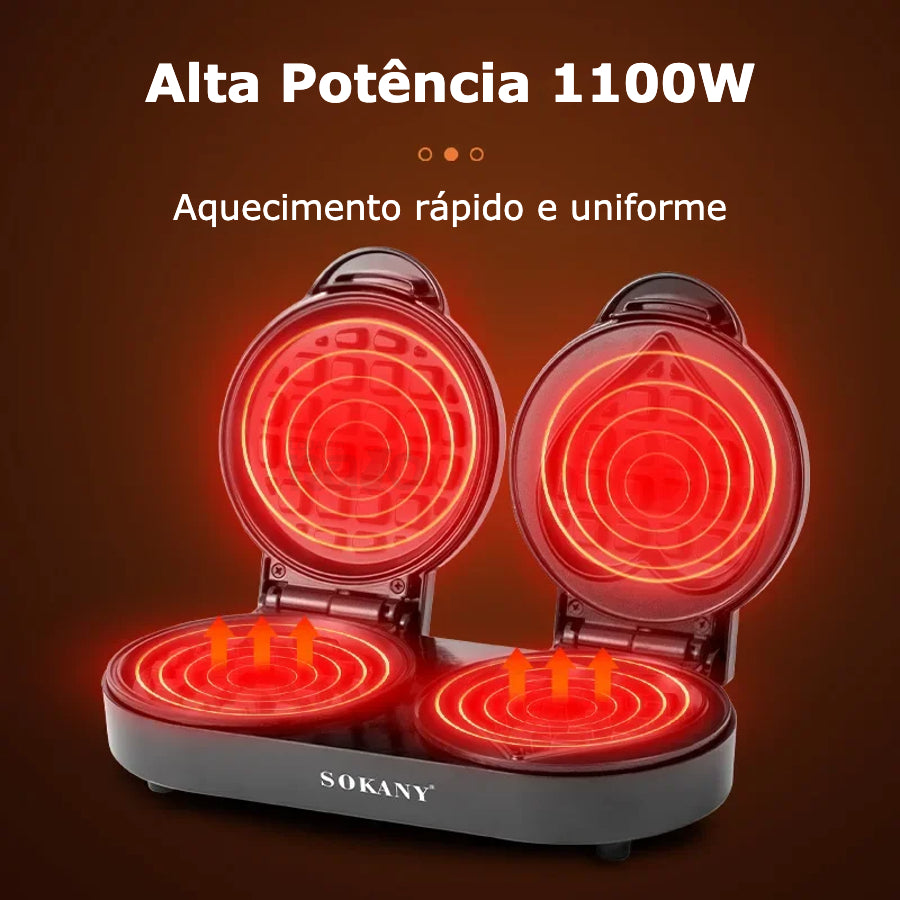 Deixe-se conquistar pelo sabor irresistível dos waffle com a máquina dupla, com formas circulares e corações!