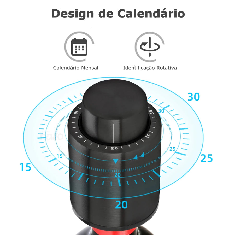Ao colocar a rolha, pode selecionar o dia que a garrafa foi aberta, para saber se o vinho ainda está bom para consumir. Esta rolha é compatível com a maioria das garrafas de vinho.