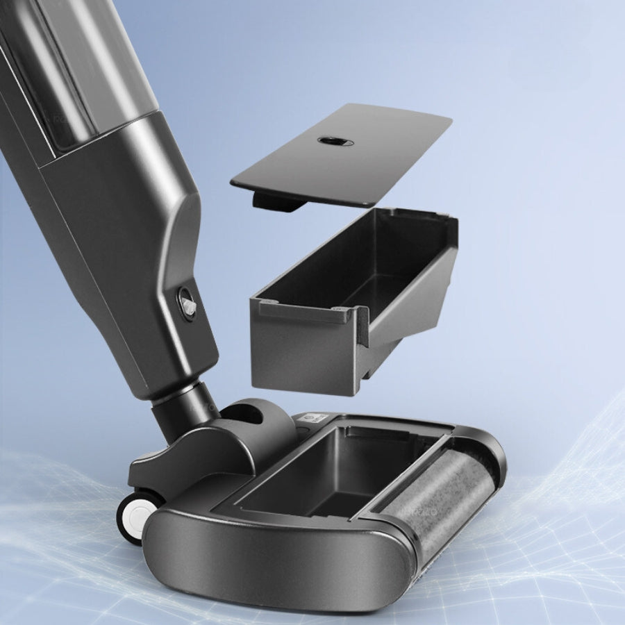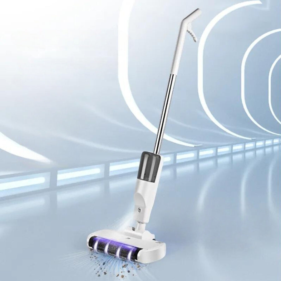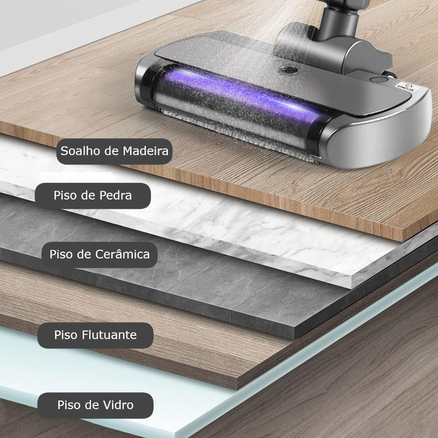 Além disso, contém uma tecnologia UV para desinfetar os seus pavimentos. No manipulo superior da mopa, consegue controlar o spray para que esta deite água para o chão enquanto aspirar e limpa o chão.